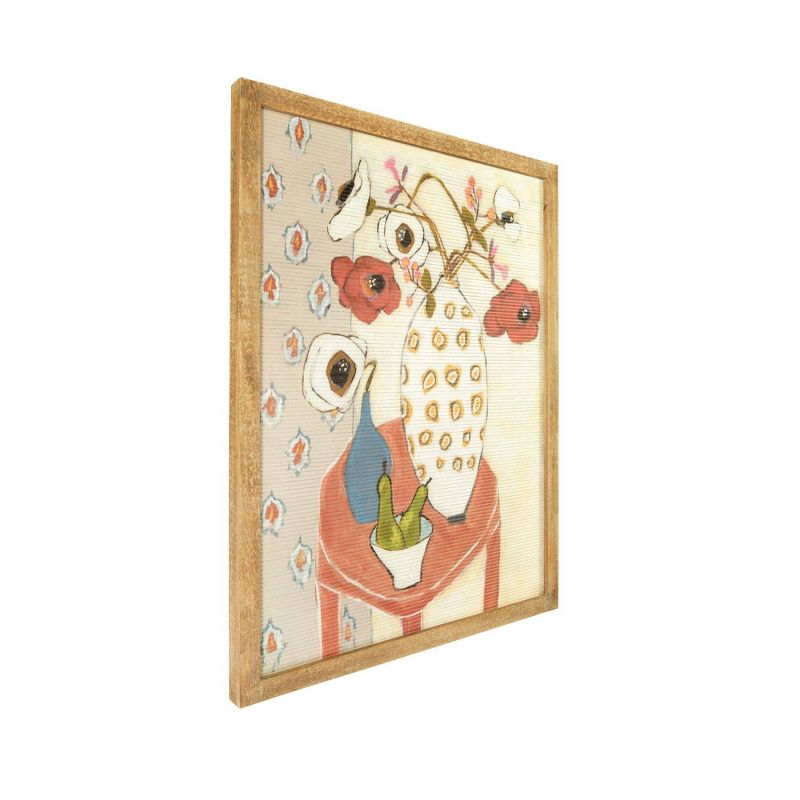Bamboo is the backdrop for these beautiful floral prints. It creates a unique 3-D effect that will add style to the room décor. Chinese fir wood frames these pieces and is complemented with a distressed finish which creates a warm vintage characteristic.