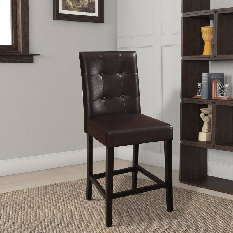Chic Styled height chair Covered In An Espresso Brown Faux Leather With Hardwood Frame And Tall Wooden Legs Goes Perfect With A Variety Of Tables. It Features A High Back And Four Tuft Buttons Which Makes This height chair A Worth Buy For Any Home.