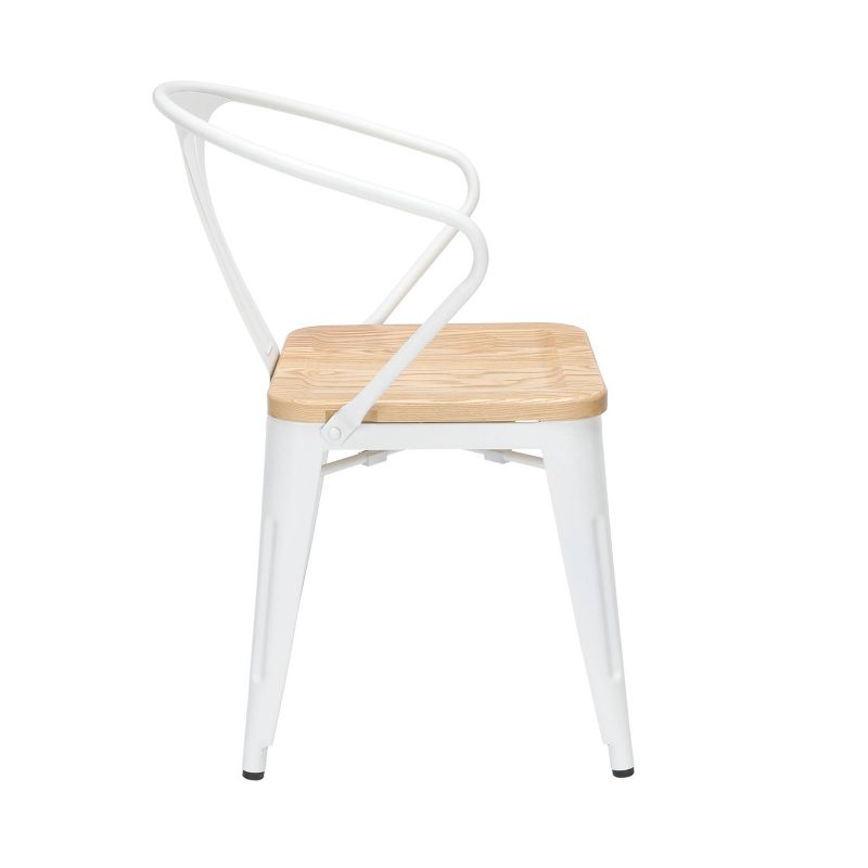 The 161 Collection blends mid century modern and industrial modern styles with current design trends to create timeless pieces that will seamlessly complement any decor. The OFM 161 Collection Industrial Modern 18" Mid Back Metal Dining Chairs with Arms and Solid Ash Wood Seats, 4 Pack, feature galvanized steel chair frames with solid ash wood seats, marrying the industrial with the modern. These stacking metal chairs come fully assembled and are welded together for added strength. The arm chairs feature an anti-UV powder to prevent heat retention, making these dining chairs a great solution for covered outdoor spaces like restaurants, cafes, bistros, pubs, or your own backyard. The mid back arm chairs feature extra wide seats, an x-brace beneath the seat that provides additional support and stability, measure 22.5" D x 20.0" W x 30.9" H, and hold at least 250 lb of weight. The metal and wood surfaces make cleaning easy and the plastic non-marring protective floor glides help prevent sliding and scratching. These chairs have been tested to light commercial-grade standards. With our 5 Year Limited Warranty, these dining chairs bring substance and style to any space.