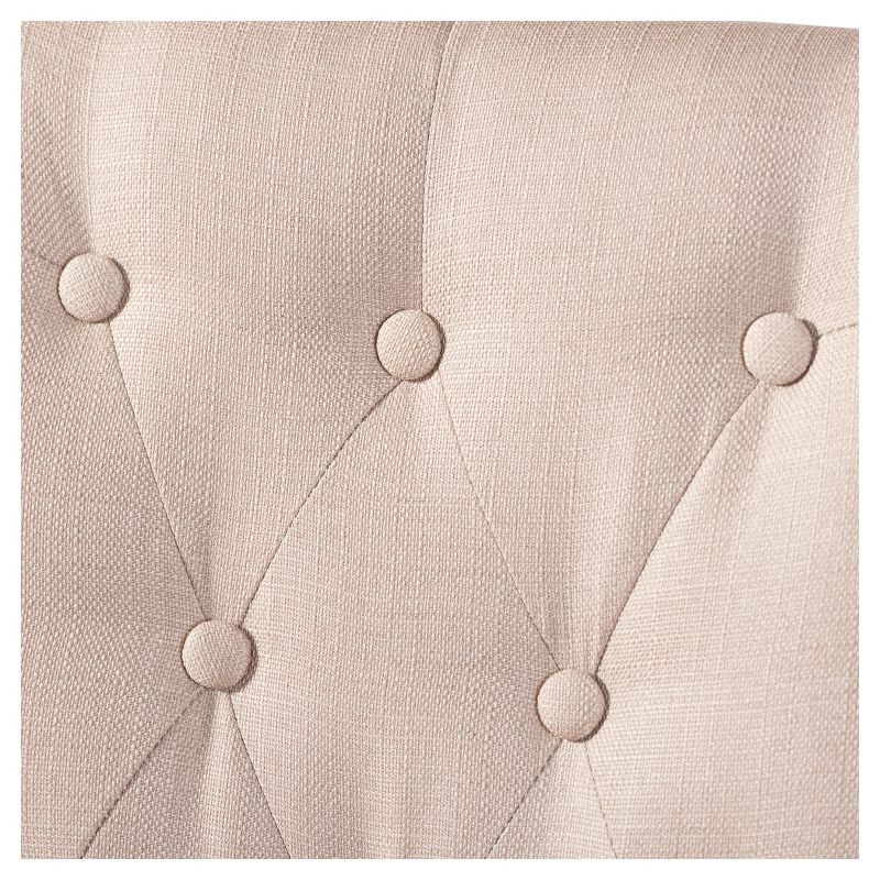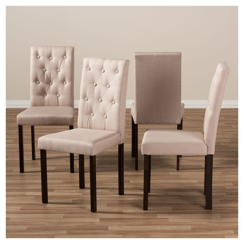 A luxurious, deep button back chair with a dark brown finished frame upholstered in neutral beige woven polyester fabric. This tufted dining side chair sits perfectly around dining table for an elegant appeal throughout your dining room. Constructed of solid rubberwood frame, the Gardner is built to last. The Gardner dining chair has a classic shape, that is accented by elegant diamond tufting with matching buttons. sleekly designed, the Gardner dining chair will be a good choice as dining chair in your kitchen or dining room. It could also be used as an accent chair by the study desk. With simple yet statement design principles, this is a timeless piece that will look great for years to come. Made in Malaysia, the Gardner requires assembly.