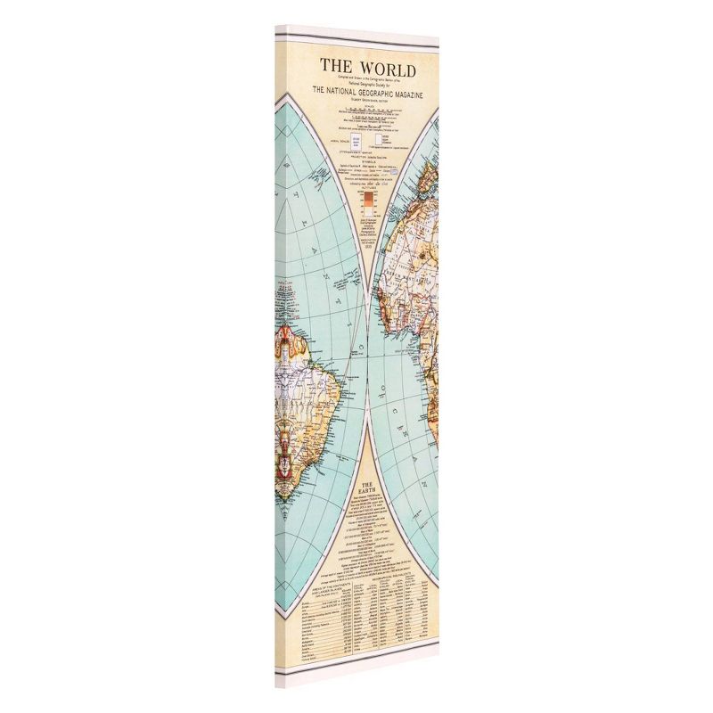 Turn an empty wall into a unique display of global proportions with this Large Vintage World Map 5 Panel Canvas Set Wall Art. This antique inspired graphic print includes five individual stretched canvas panels that can be displayed in any arrangement. Each canvas panel is stretched over wood stretcher bars and includes industrial hangers on the back for any wall surface. Overall display measures 40 inches tall x 78.75 inches wide without any spacing in between each panel. Individual canvas wall art pieces measure 23.25" tall x 15.75" wide, 31.5 tall x 15.75 wide, and 40" tall x 15.75" wide. Jet-set across the globe without leaving your living room or home office with this vintage map of the world multi panel canvas wall decor.