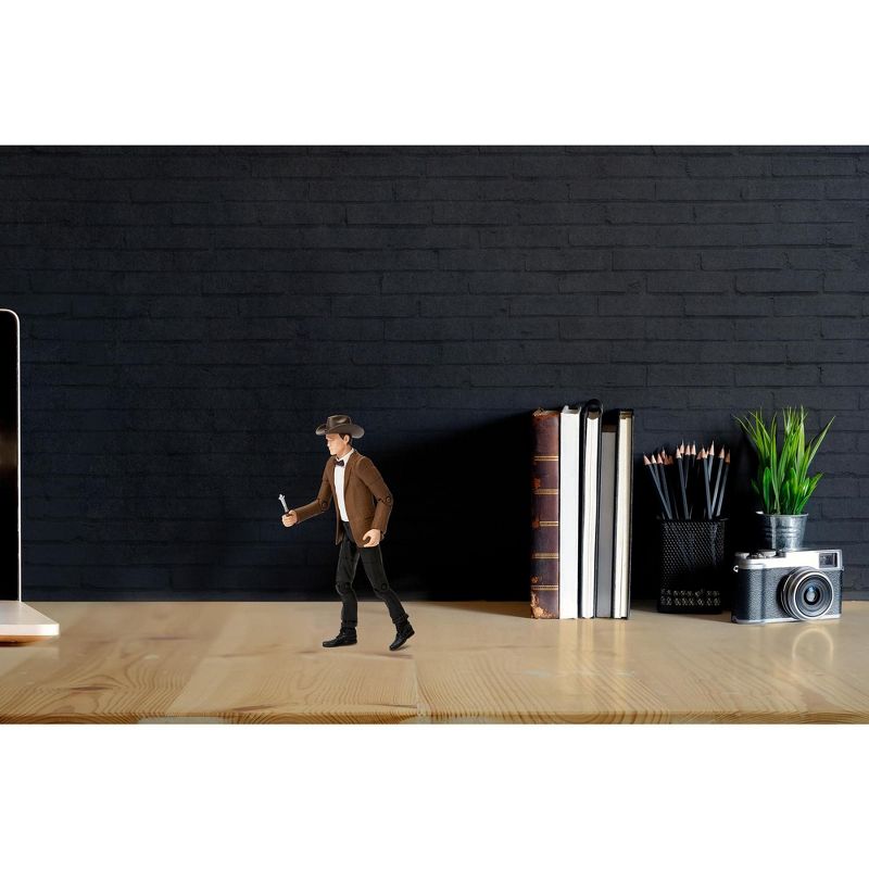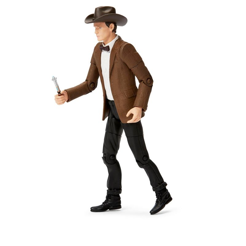 Recreate scenes from Doctor Who with this detailed fully articulated 5.5 inch action figure! "I wear a Stetson now. Stetsons are cool." With those words, the sixth season of Doctor Who began, and this figure depicts the Doctor as he appeared at the beginning of 'The Impossible Astronaut,' with his sonic screwdriver and his new cowboy hat.
