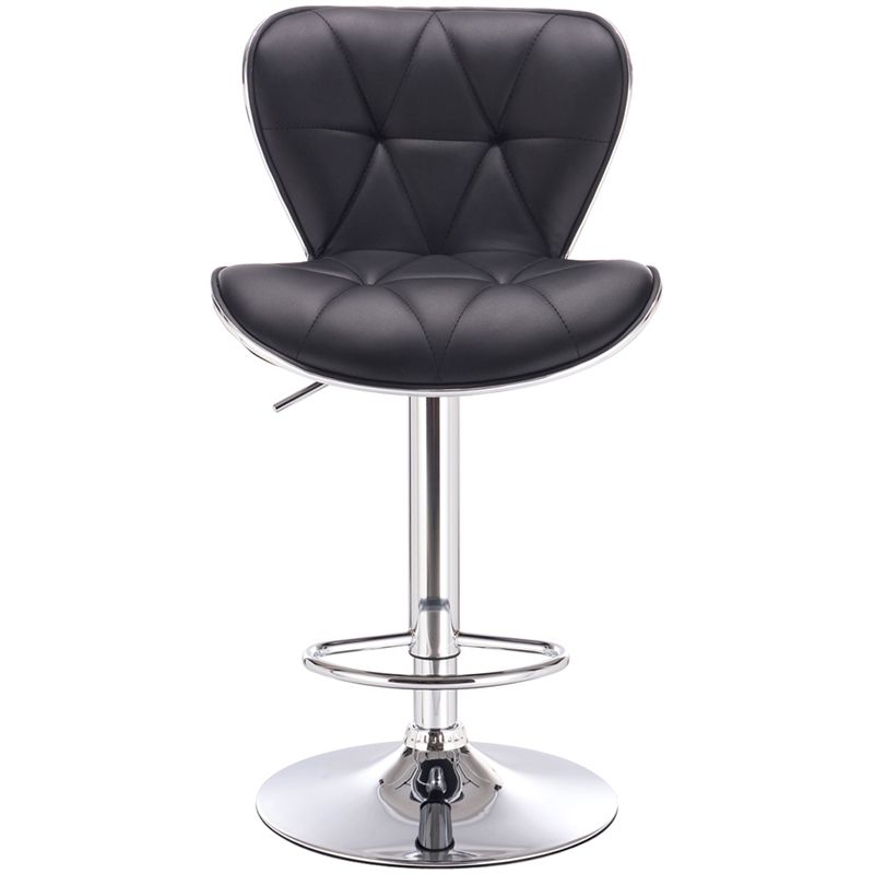 Presented in black with sturdy rounded base capable of holding up to 200 lbs and beveled seat contoured for providing maximum comfort, the set of 2 adjustable bar stools is easy to assemble. Designed to be suitable for bars, coffee rooms, kitchen, office, and several other places, it offers ultimate convenience and the most comfortable sitting experience.Features : Quilted design covering for providing a contemporary chic design; Easy to assemble; Built in swivel seat; Height adjustable seat with air lift; Constructed with a footrest for bringing comfort sitting experience; Adjustable swivel bar stool with chrome base; Made of high duty chrome, foam and black PU leather; Max. adjustable Height 43""H; 1 Year Limited Warranty; For residential use. Specifications : Product Dimensions : 35""H x 18.5""W x 20.5""D; Product Weight : 41lb; Upholstery Material : PU; Weight Capacity : 265lbs.