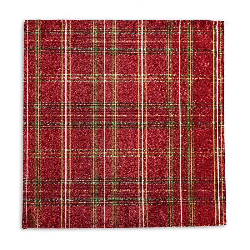 The Shimmering Plaid napkin set is the perfect solution to your seasonal decorating needs. Holiday design features a gorgeous red and green plaid with hints of lurex for an elegant shine. Excellent for special occasions, events, parties, family gatherings and everyday use during the holiday season. Soft and durable fabric can be ironed to release stubborn creases and make your napkins wrinkle free. Hemmed edge adds a finished look and prevents wear and tear. Napkins measure 17x17 and come as a set of 4. 100% Polyester. Easy care, machine washable. Coordinate to the Shimmering Plaid tablecloth to complete your look!