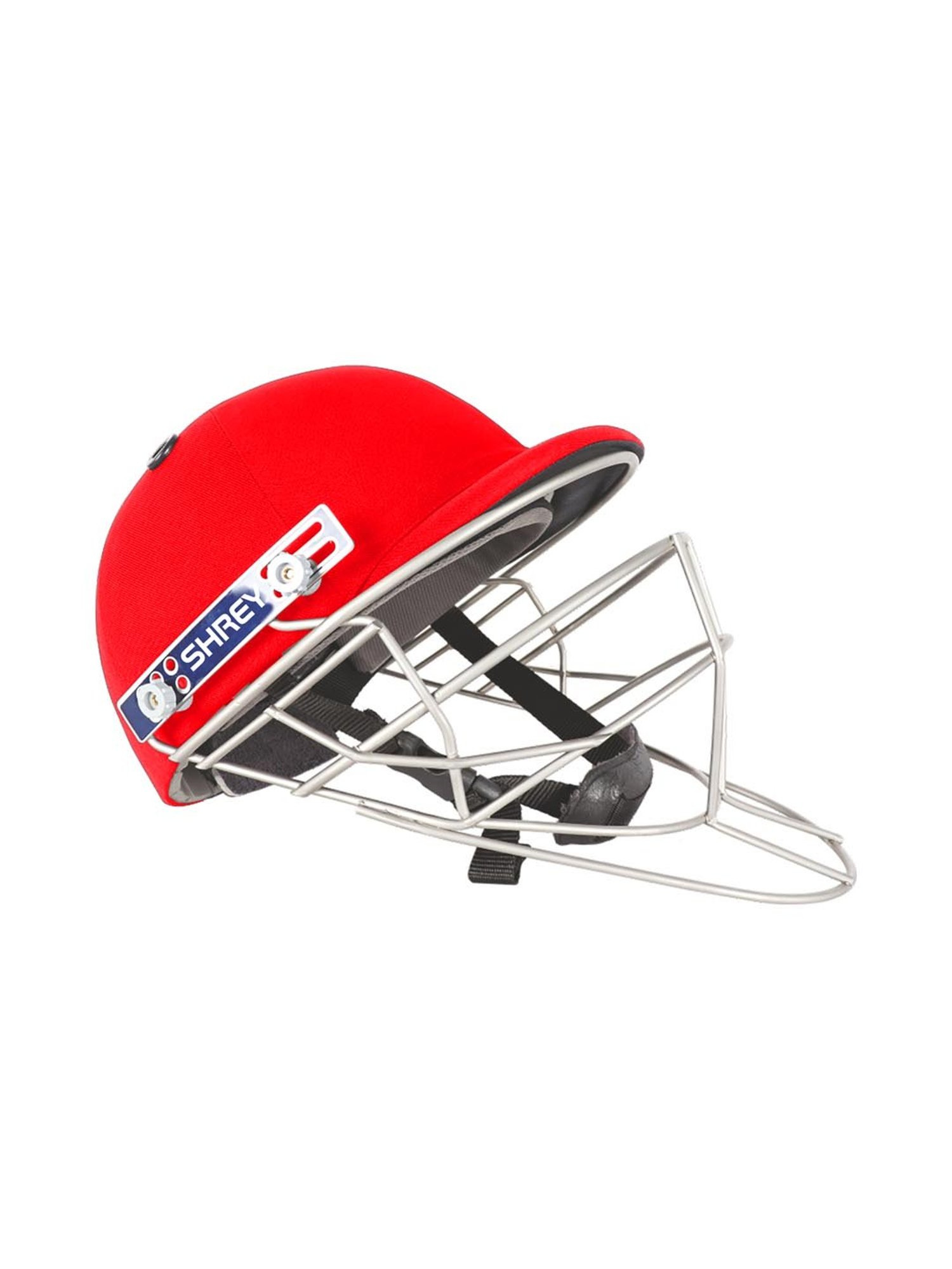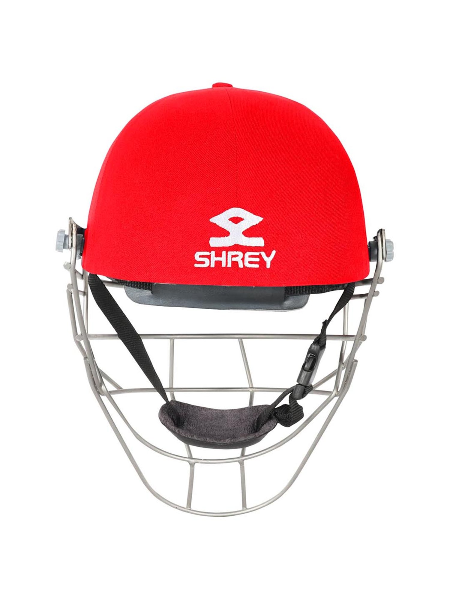 Perfect to keep you comfortable throughout your playing sessions, this M-size helmet from Shrey ensures to provide you with the required performance. The extra bars on the eye-line give better protection. It features a removable and washable swoppa band, three-layer composite fiber sandwich construction with polyurethane liner and long visor to provide extra protection to the neck. The rear retention system with velcro straps and pads helps in getting the desired ?t and comfort. This red helmet has a height of 24 cm, a length of 30 cm and weighs 990 grams.