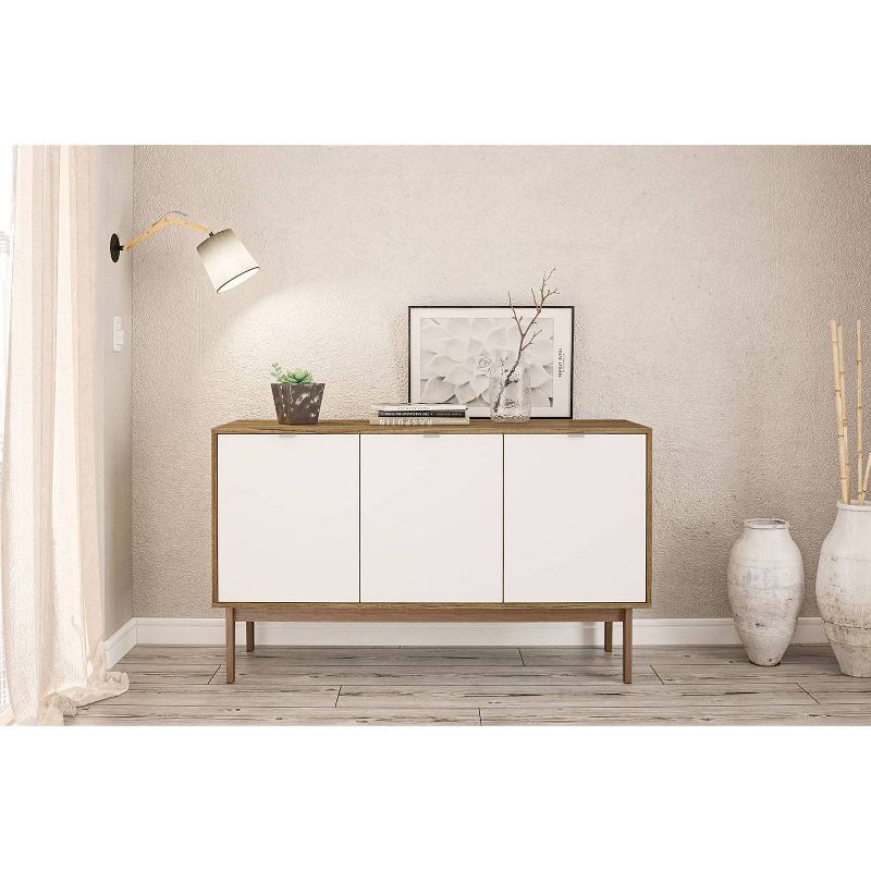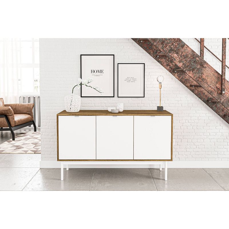 The Sienna Sideboard will add a modern touch to your home. This sideboad has a walnut finish with white door fronts and legs and a protective melamine finish. The 3 cabinets and shelving will keep all your items neat and organized. The 2 adjustable shelves allow you to customized your space based on your organizational needs.