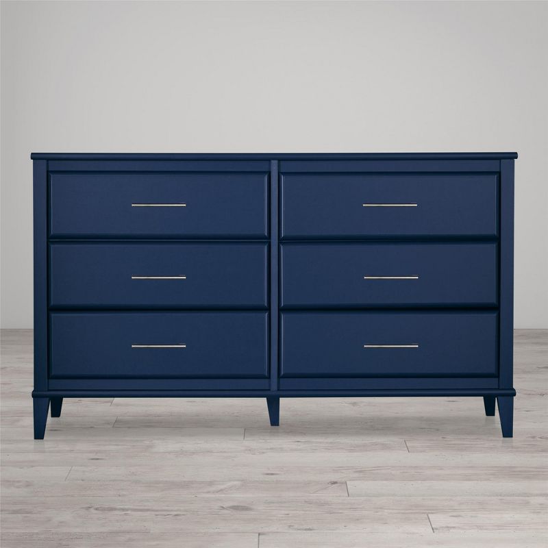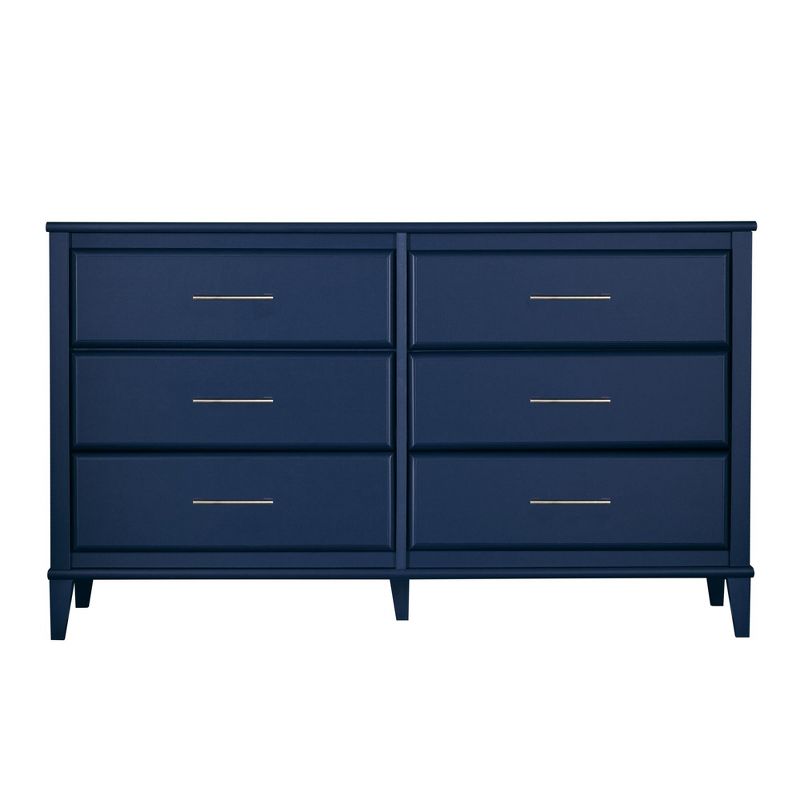 • Made of laminated particleboard, the non-toxic blue finish pairs with 2 sets of drawer handles that are included to customize the look of the kids’ double dresser