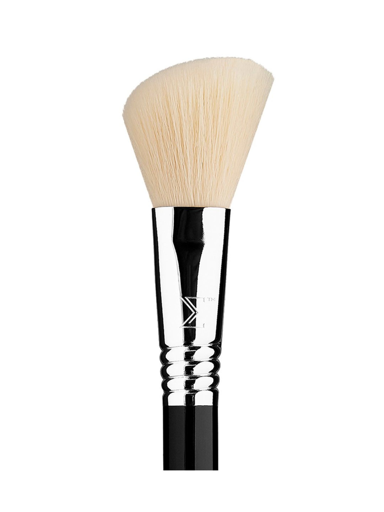 Your everyday classic brush for blush and bronzer in extra-soft SigmaTech fibers, sweep color across cheekbones for a natural, contour look. Softly contour the cheekbones for sheer to medium coverage.