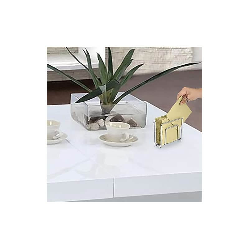 Color: Silver Want something to hold your napkins from Flying away when you Eat outside or to use as a decorative this sleek, stainless steel napkin holder will keep your napkins in one spot to give it a sleek look, and will keep them from blowing away in the wind. This gives a classy look while still having a purpose to it.
