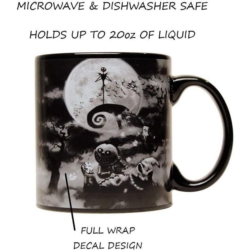 • FUN DESIGN: Black mug features a full-wrap design of classic Nightmare Before Christmas characters.
