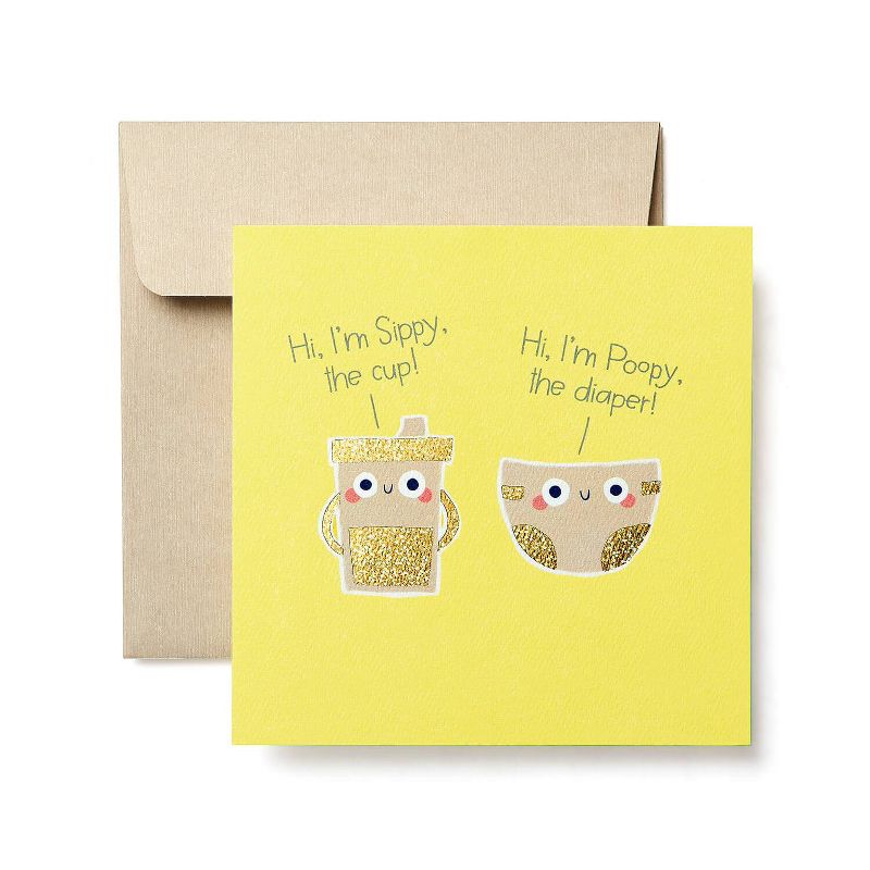 Meet your new friends! This Present Company card by American Greetings makes it easy to spill meaning into your very full life. A funny new baby congrats greeting card sends a silly and lighthearted message with warmth. Let two adorable and funny characters accompany your happy wishes in celebrating the newest member of the family! Great for a baby shower, pregnancy congrats, parents-to-be, mom-to-be and dad-to-be! Pair the card with a unique seal you can attach to the envelope. With so many amazing people in your life, you'll always have a reason to celebrate. Present Company delivers the perfect wishes every time!