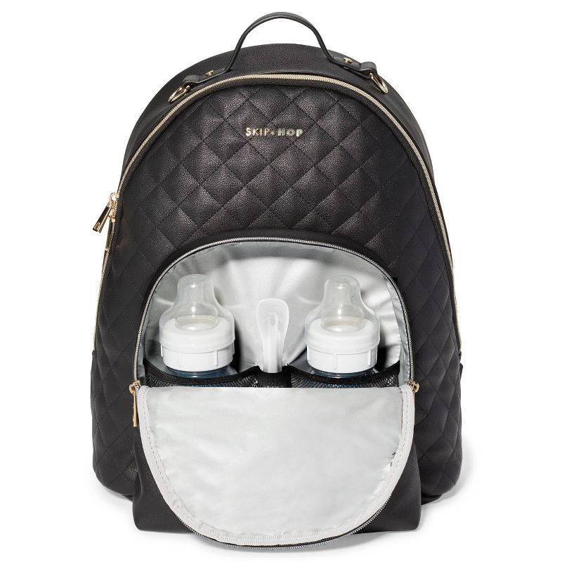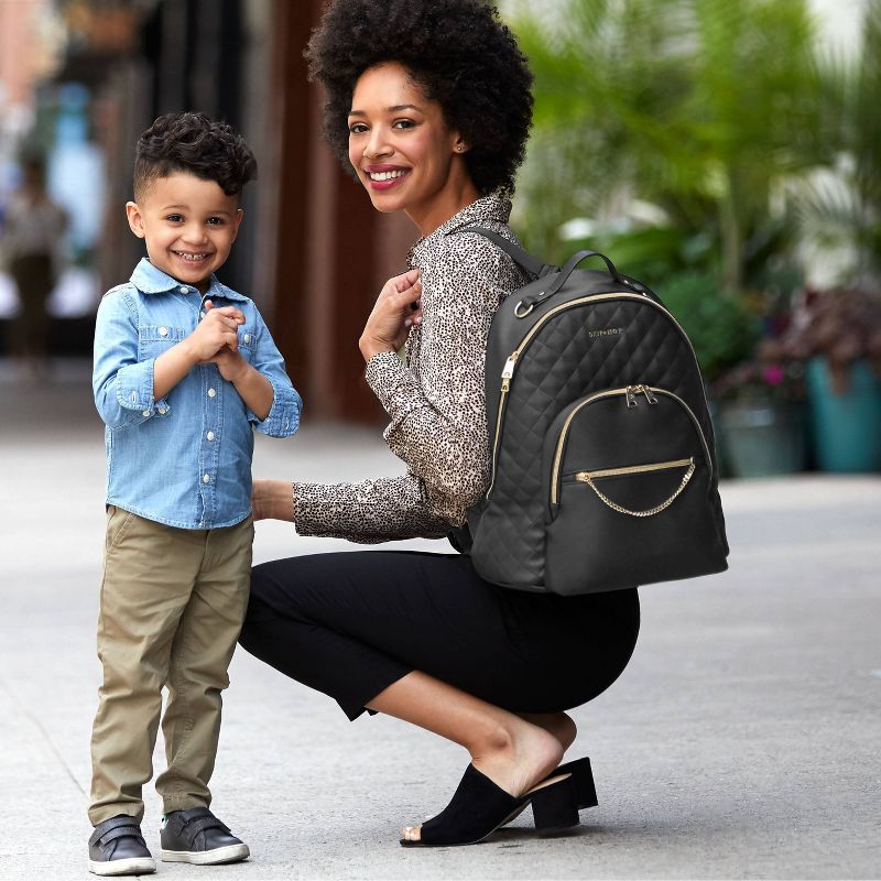 Classic and chic, the LINX Quilted Diaper Backpack offers hands-free ease for on-the-go parents. Luxe vegan leather, stylish quilting detail and a gold-tone chain accent adds a polished finishing touch.