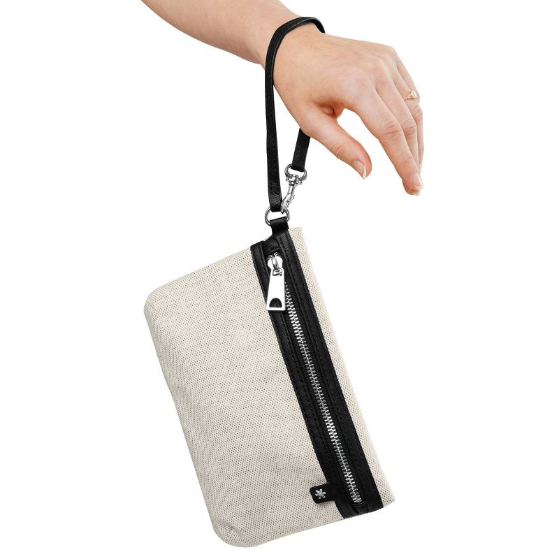 •Coated canvas front with contrast vegan leather back, sides and trim
