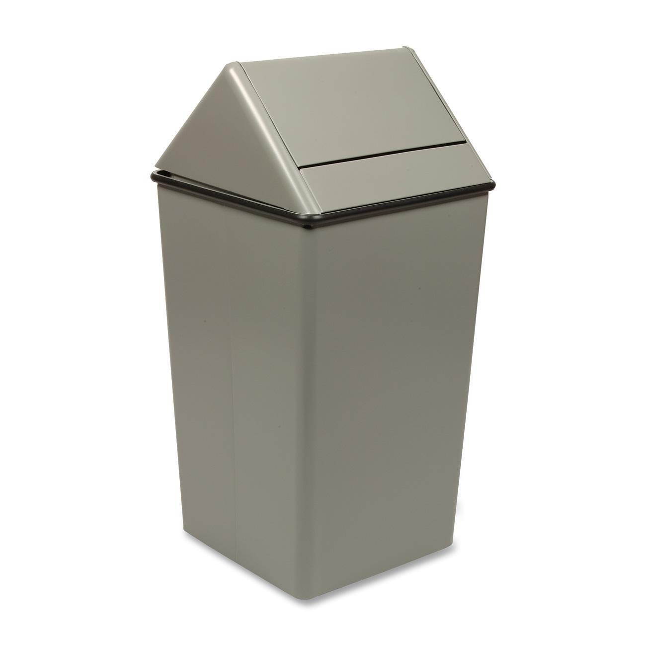 Slate Swingtop Receptacle 36 gallon square slate trashcan Comes standard with 4 feet to lift off the floor and to protect it from scratches Unique Flame-Out design smothers fires in less than a minute and depletes the oxygen supply without bubbling the sleek enamel finish making it extremely safe Very functional in labs industrial settings medical environments and schools Optional rigid plastic liner available