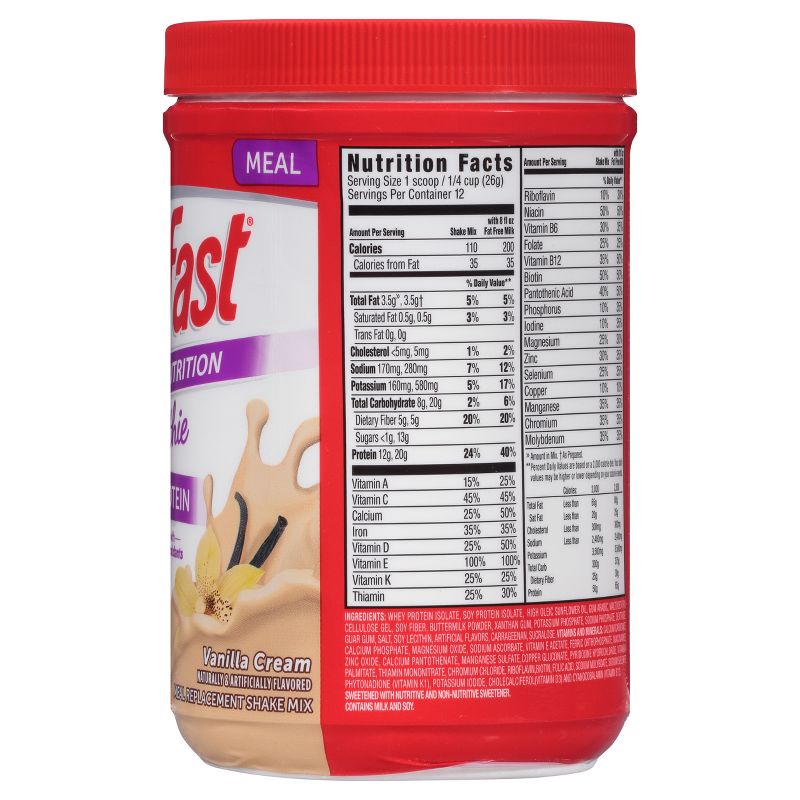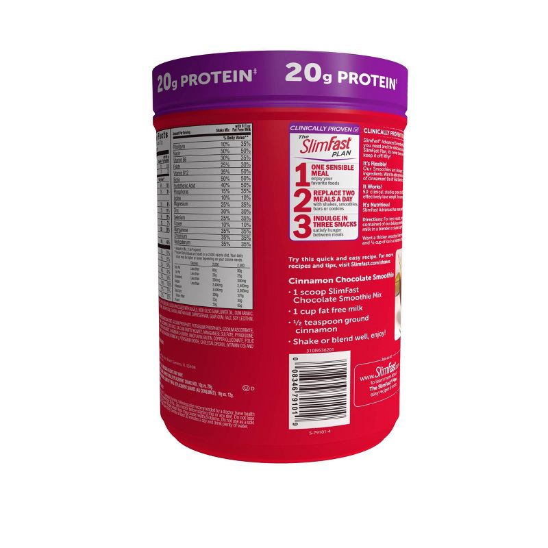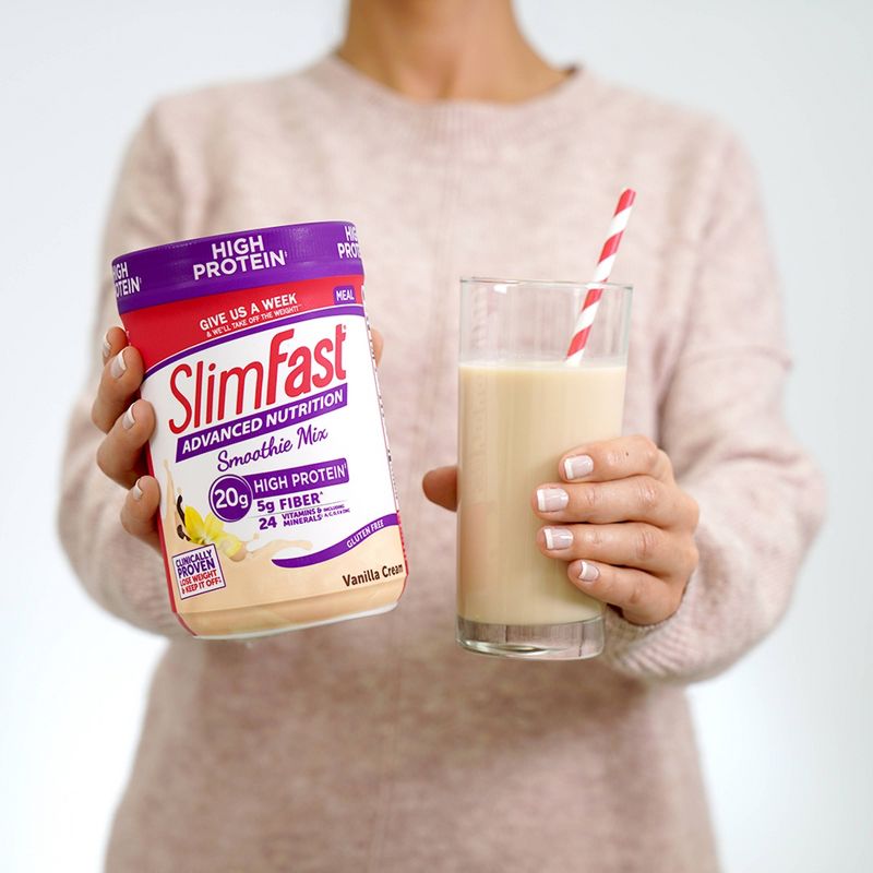Softly sweet and blissfully smooth, the SlimFast Advanced Nutrition Vanilla Cream Smoothie Mix can be enjoyed in many different ways. All of them are delicious. Blend it with fat-free milk and ice (optional) for a cool meal replacement. Use it as a base for your favorite smoothie recipe^ or add it to your favorite baked goods recipe. Best of all, each serving of smoothie mix has 20g of protein, 5g of fiber, and zero added sugar†. There’s never been a better reason to mix things up. It’s success your way and it tastes great. Part of the clinically proven SlimFast Plan, these mixes make weight loss as easy as 1-2-3. Enjoy one sensible meal, two SlimFast meal replacements, and three snacks. The SlimFast Plan is clinically proven to help you lose weight fast and keep it off! †Not a low-calorie food. ^ Additions to smoothies will adjust calorie content and nutritional values.