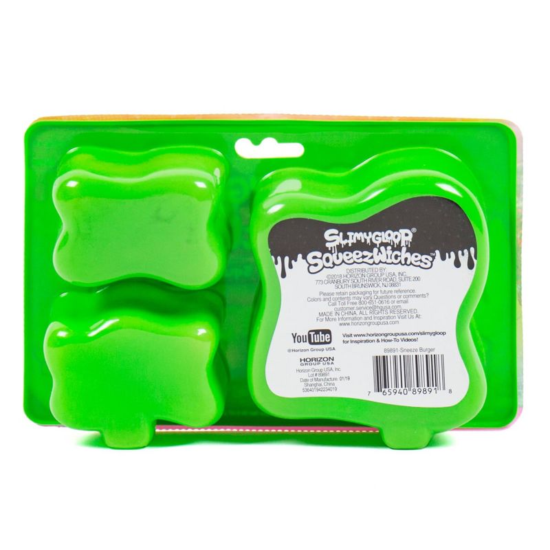 Squish and squeeze stretchy gooey slime snacks with SLIMYGLOOP Sneeze Burger SqueezWiches! Complete your play snack by stacking all the fun ingredients together and begin squishing and squeezing it for the ultimate sensory experience. Embellish your slime with galactic and sparkly glitter stars that create an eye-catching effect. Add fun details to your slime as you fold in shimmery glitter for a touch of shine. SqueezeWiches are a fun way to relieve stress and anxiety while keeping your mind active. Recommended for ages 6 and up.