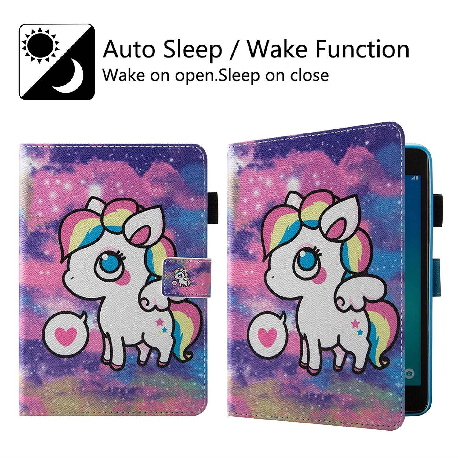 Smart case with stylus pen holder design. Auto sleep wake feature,tablet wakes up when you open the case and sleeps when you close it, effectively extends its battery life!