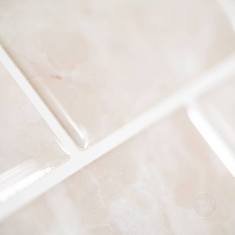 Buy from the market leader in self adhesive tiles - premium quality tiles manufactured in North America. Choose from a large selection of easy to install, high quality tile designs. With the pearly effect of the Subway Sora (SM1160G-04-QG), you will feel like living among the shells! Beige-coloured and rather standard-sized, this imitation marble tile is chic without overdoing it. Each pack of 4 tiles covers 2.48 sq ft (0.23 m2). Smart Tiles are robust and resistant to heat from stovetops. They are also suitable as a backsplash in bathrooms (not suitable for inside the shower). Follow the installation instructions to ensure a long life-span and a trendy, smart new look for your interior in minutes. Simplify your life with these innovative stick on wall tiles, that have been specially designed for kitchen and bathroom backsplash areas. No more messy, time-consuming and nerve wracking tile installations with grout or glue. Effortless DIY, easy to follow instructions included! Clean and dust free installation. Once Smart Tiles have completely adhered to the surface, generally after 48 hours, we guarantee that they will stick, without peeling off or cracking, for as long as you need them to. Buy with confidence, 100% authentic and original tile stickers, guaranteed to last.