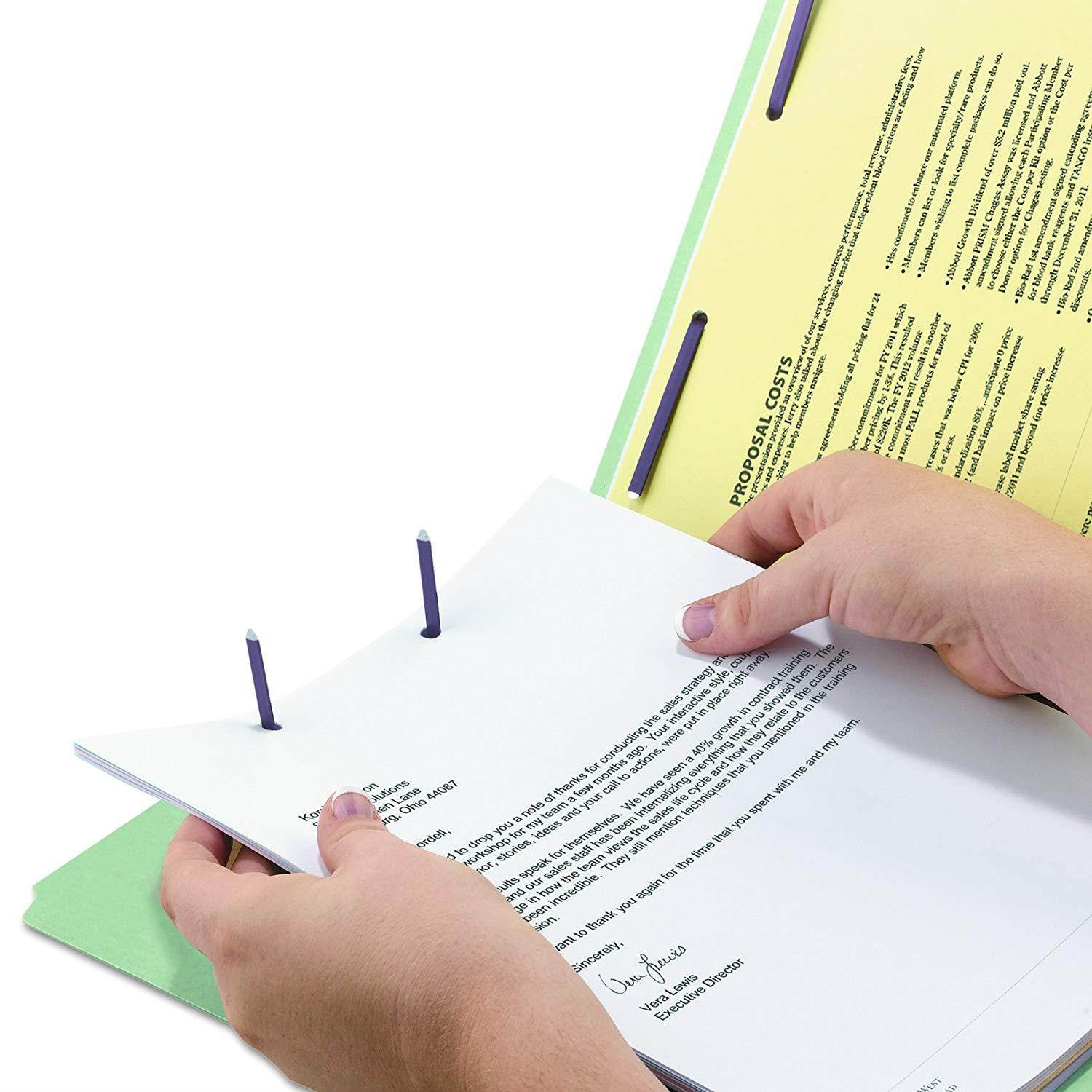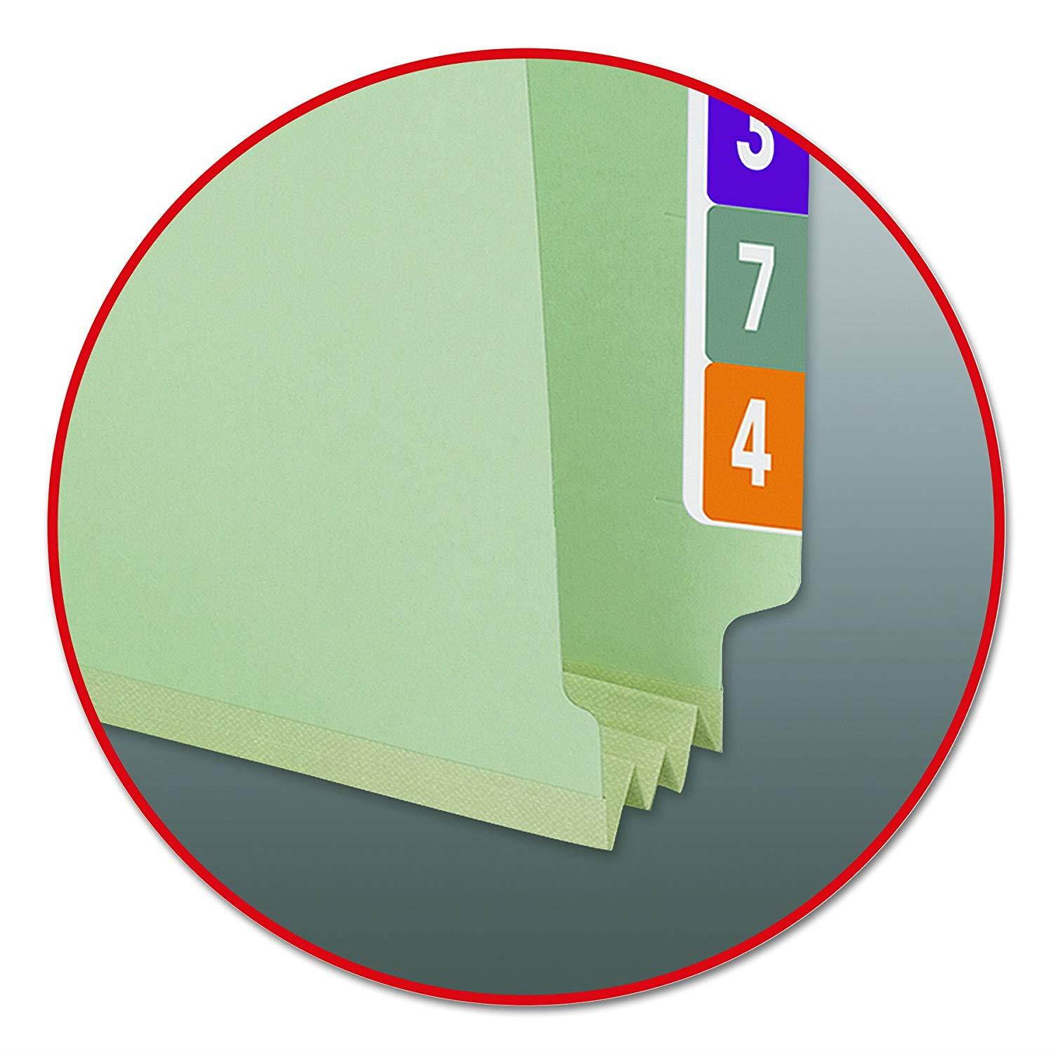 Keep papers secure and in order, even when folders are handled by lots of people and transported out of the office. Patented SafeSHIELD coated technology reduces paper tears, finger cuts and excessive fastener crinkling. Made of heavy weight 25 point pressboard stock for superior durability. Tyvek gusset expands up to 3" for greater storage capacity. Subdivide documents with ease. Two 2" prong SafeSHIELD coated B style fasteners in positions no.1 and no. 3. Includes 25 legal size folders (15-1/4" W x 9-1/2" H). Each folder has a straight-cut tab. Proudly made in the USA. Contains 60% recycled content, 30% post-consumer material and is SFI Sourcing Certified.