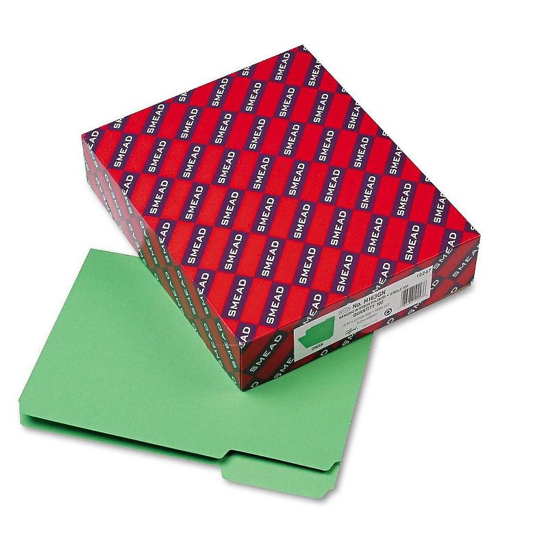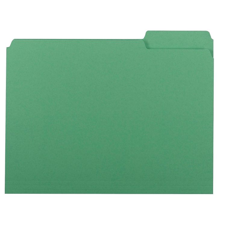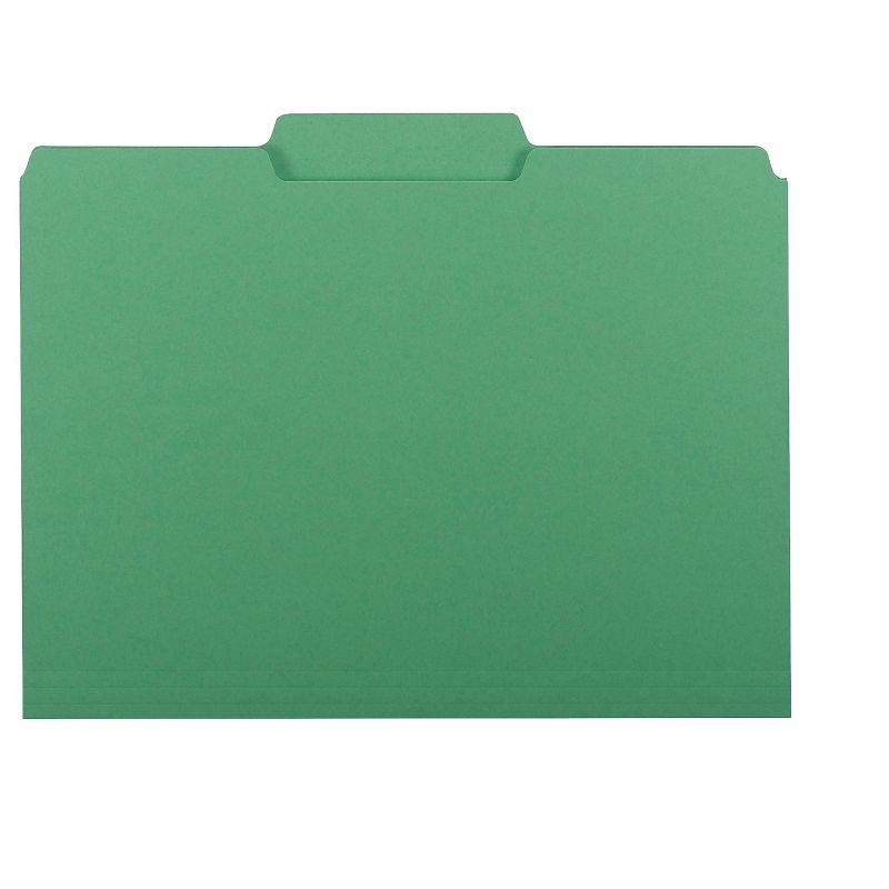 Sized to fit neatly inside hanging files without obscuring index tabs. This product was made using wood sourced from a certified managed forest. File Folder Type: Interior; Top Tab; Size: Letter; Folder Material: 11 pt. Stock; Color(s): Green. Scored for 3/4" expansion. 11 pt. stock. This product was made using wood sourced from a certified managed forest. Sold as 100/Box.