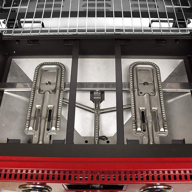 • Tabletop gas grill designed with 2 Vector burners that produce a whopping 13,000 BTUs