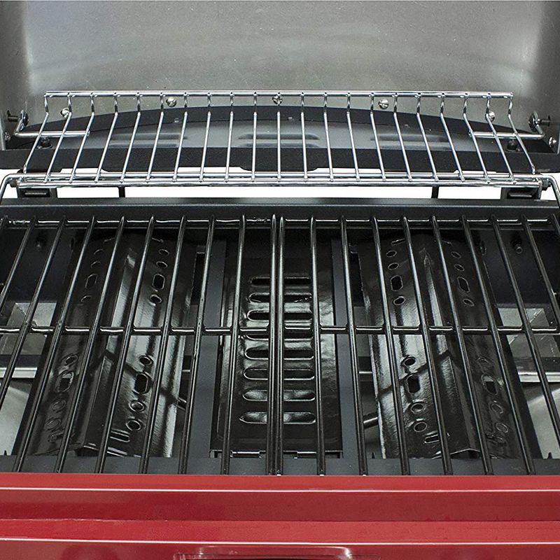 This outdoor propane gas grill boasts 367 square inches of cooking area, meaning it can cook a wide variety of foods like steak, burgers, ribs, and so much more. It's designed with 2 Vector burners that produce a whopping 13,000 BTUs of power. This portable grill even comes with porcelain-coated wire cooking grids and heat tents with a chrome-plated warming rack, giving you more possibilities than ever.