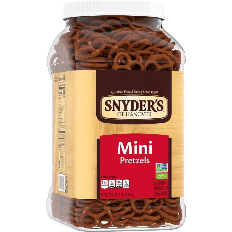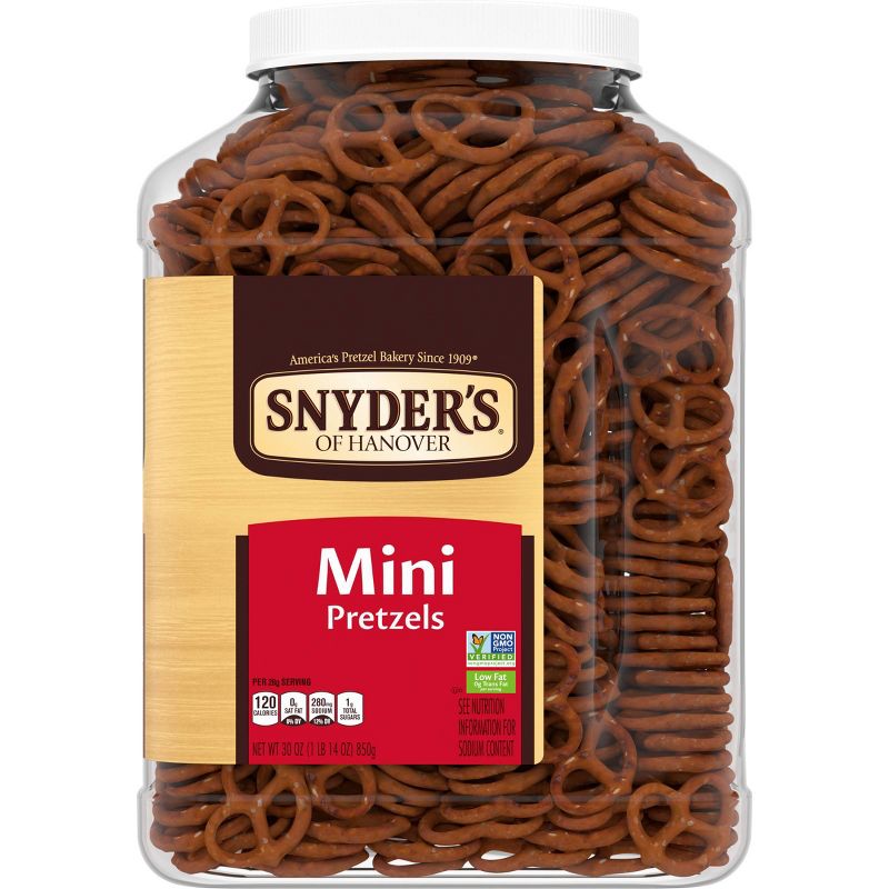 Snyder's of Hanover Mini Pretzels give you that delicious crunch for a perfectly sized snack. Our Mini Pretzels offer all the delicious flavor of traditional pretzels in a crunchy, bite-size snack. They're perfect for snacking at home or on-the-go! Made in a facility that does not process peanuts, they're the perfect school snack. Snyder's of Hanover has been America's Pretzel Bakery since 1909 and our pretzels give you that delicious crunch for the perfect snack! Non-GMO project verified and made in a facility that does not process peanuts, Snyder's of Hanover pretzels are made from wholesome ingredients, kneaded, and oven-baked to seal in all the flavor. Snyder's of Hanover pretzels have been shared across tables, across generations and across the country, making us America's favorite pretzel brand.