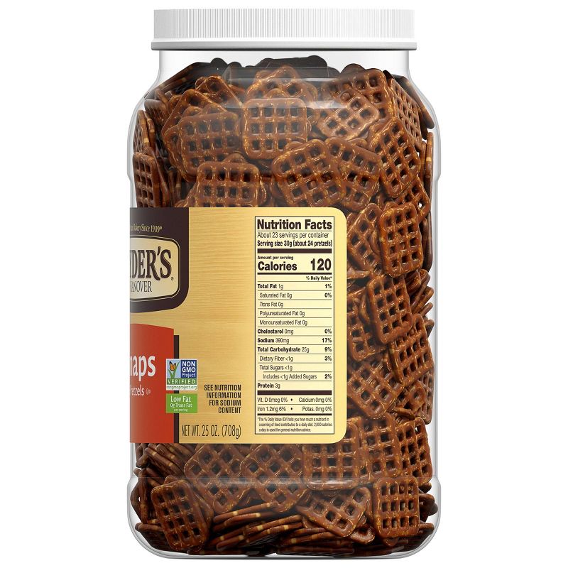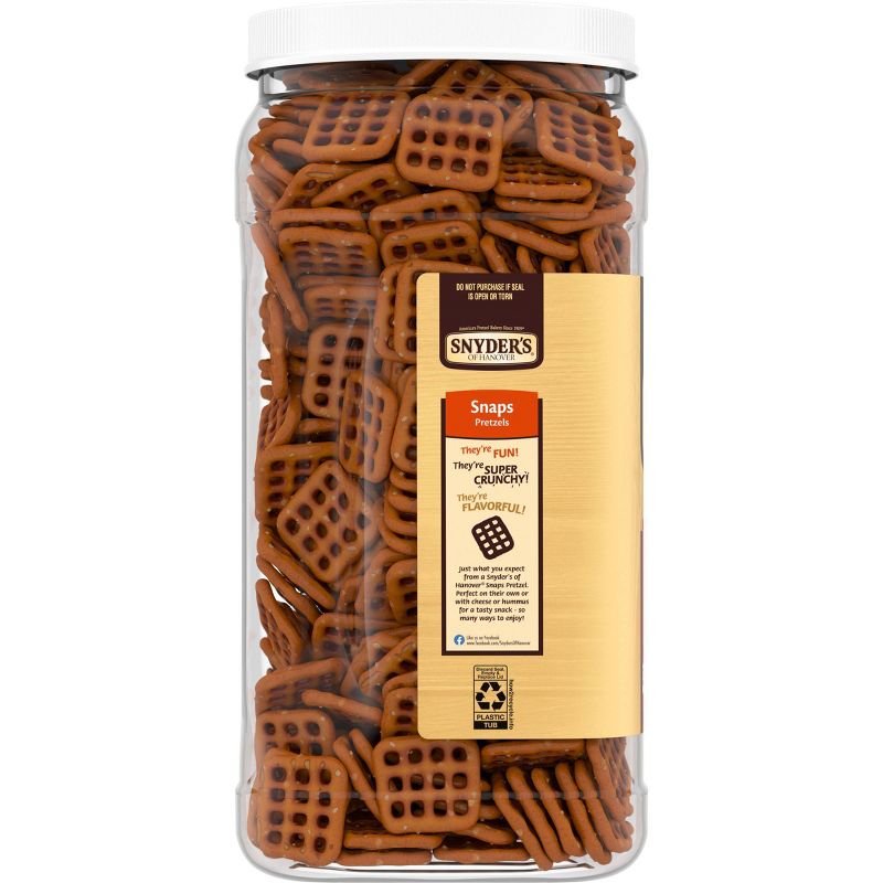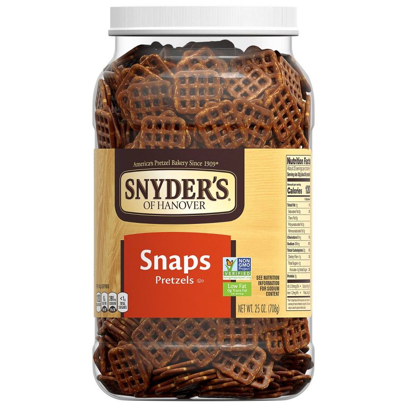 Snyder's of Hanover Pretzel Snaps offer all the rich, hearty flavor of traditional pretzels in a crunchy, checkerboard shape. They're perfect for snacking, stacking, sandwiching and scooping. You'll love this delightfully versatile snack with only 1 gram of fat per serving. Snyder's of Hanover pretzels give you that delicious crunch for the perfect snack! Made in a facility that does not process peanuts, they're the perfect school snack. Stock up your office or pantry with this value pack! Snyder's of Hanover has been America's Pretzel Bakery since 1909 and our pretzels give you that delicious crunch for the perfect snack! Non-GMO project verified and made in a facility that does not process peanuts, Snyder's of Hanover pretzels are made from wholesome ingredients, kneaded, and oven-baked to seal in all the flavor. Snyder's of Hanover pretzels have been shared across tables, across generations and across the country, making us America's favorite pretzel brand.