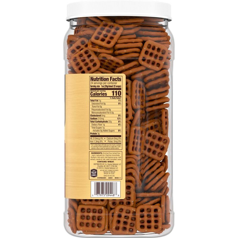•LARGE CANISTER: 24 ounce canister of pretzels with resealable lid for stocking your pantry