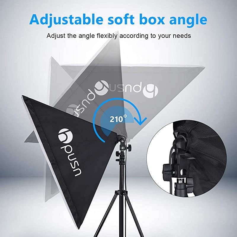 *****210 Rotatable Head & Adjustable StandWith an independent locking knob, the studio softbox can rotate 210 to suit at different angles perfect photo shoot with 1/4-inch Standard Screw Thread Tip. 3-section column design, collapsing down to 66cm and extending up to 200cm. Constructed from aluminum alloy, the light stand features exceptional strength. *****Suitable for