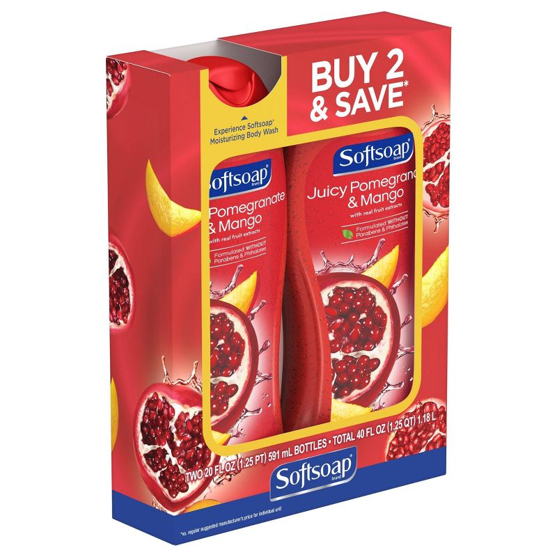 Your skin has been dreaming of Softsoap Juicy Pomegranate and Mango Infusions Moisturizing Body Wash. This fragrant body wash is loaded with moisture beads ready to release tiny bursts of softness, leaving your skin feeling fresh and your senses happy. Indulge your skin with a rich, lustrous lather that soothes and hydrates. The ripe scent of juicy pomegranate and mango are your perfect escape, giving you a long-lasting, fresh smell. Infused with real extracts of ripe red pomegranates – nature’s anti-oxidant rich fruit – and exotic mango, this body wash helps your skin feel silky soft, effortlessly hydrated, and smooth with every use.