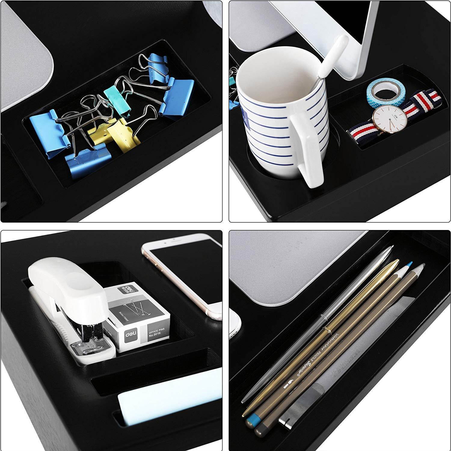PERFECT DESK ORGANIZER: Have various holding slots for cell phone, cup, papers, stapler, clips and other everyday office supplies and allow you to slide your keyboard and mice under the stand to get your desktop space back
