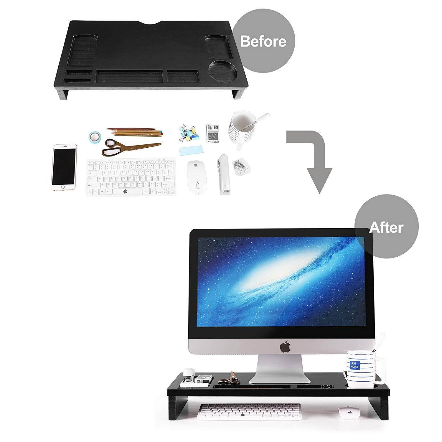 EFFECTIVELY MONITOR RISER: Elevate monitor up to eye level for comfortable, ergonomic viewing experience. Make you get free from tension headaches or eye and neck strain from looking down on your computer screen while improving computer's ventilation. It is also suitable for putting TV, printer, cellphone, laptop, etc.