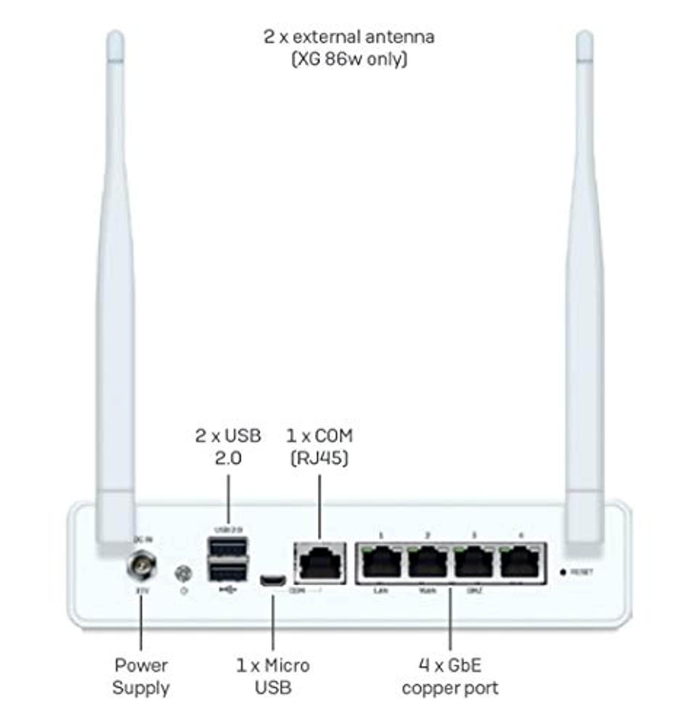 Note: The 86w do not support some advanced features like on-box reporting, dual AV scanning, WAF AV scanning and the email message transfer agent (MTA) functionality. If you need these capabilities, the XG 106 (w) is recommended.