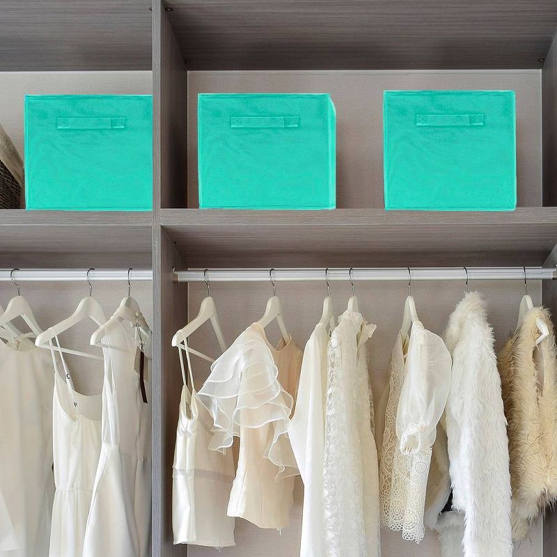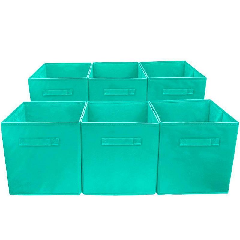 •FOLDABLE STORAGE CUBE (6 PACK, TEAL) — Foldable basket set provides attractive, lightweight solutions to many storage needs while keeping household items tidy and organized