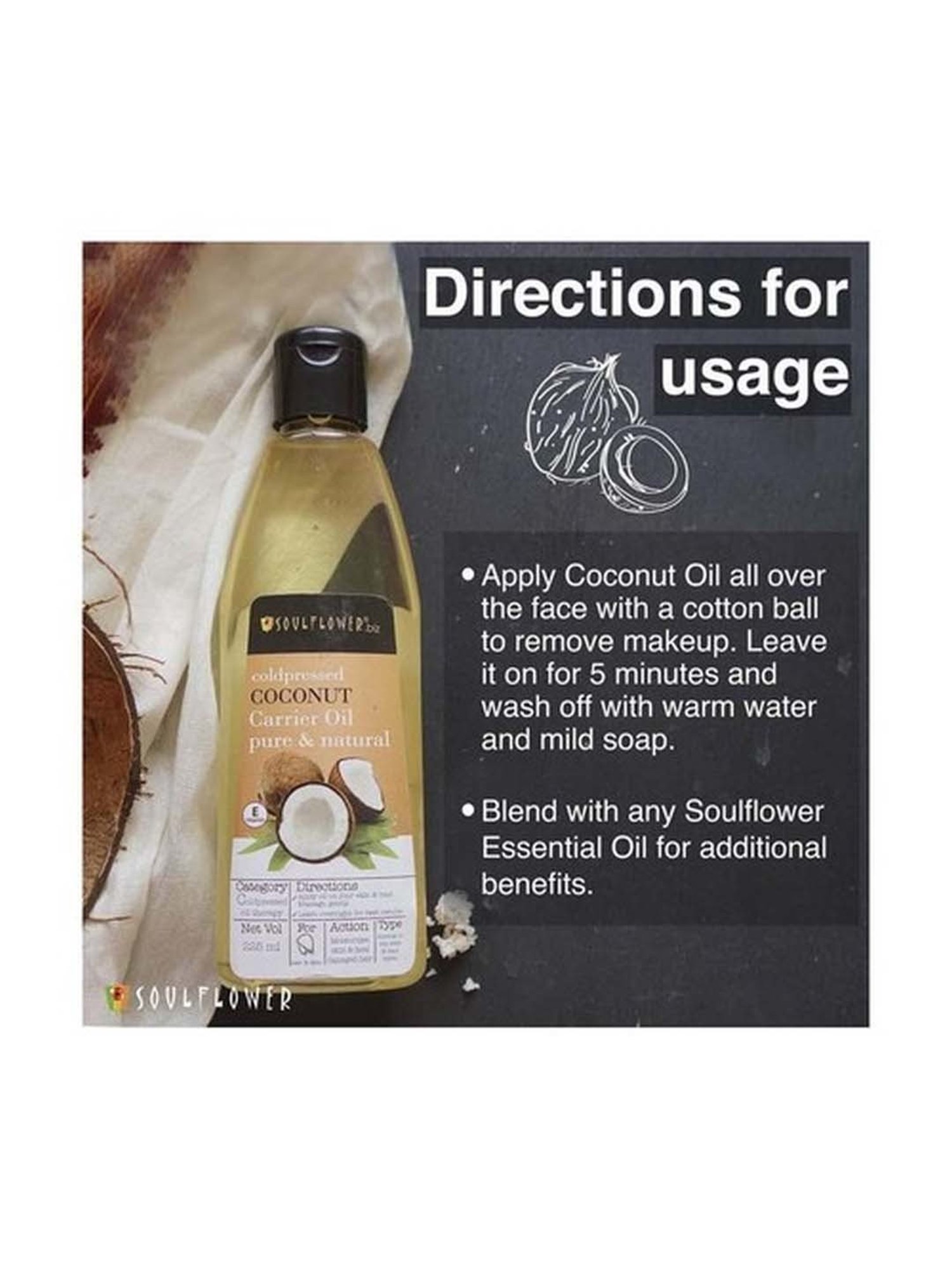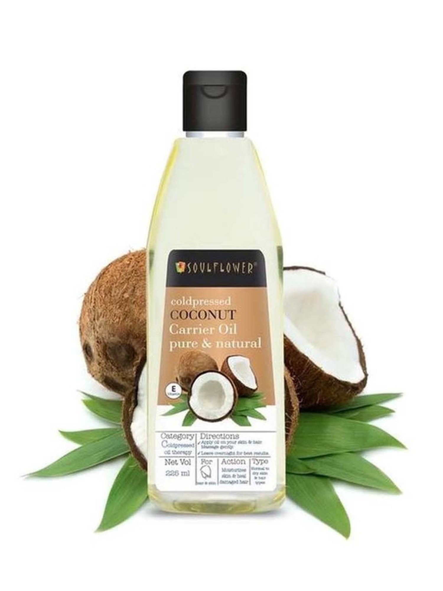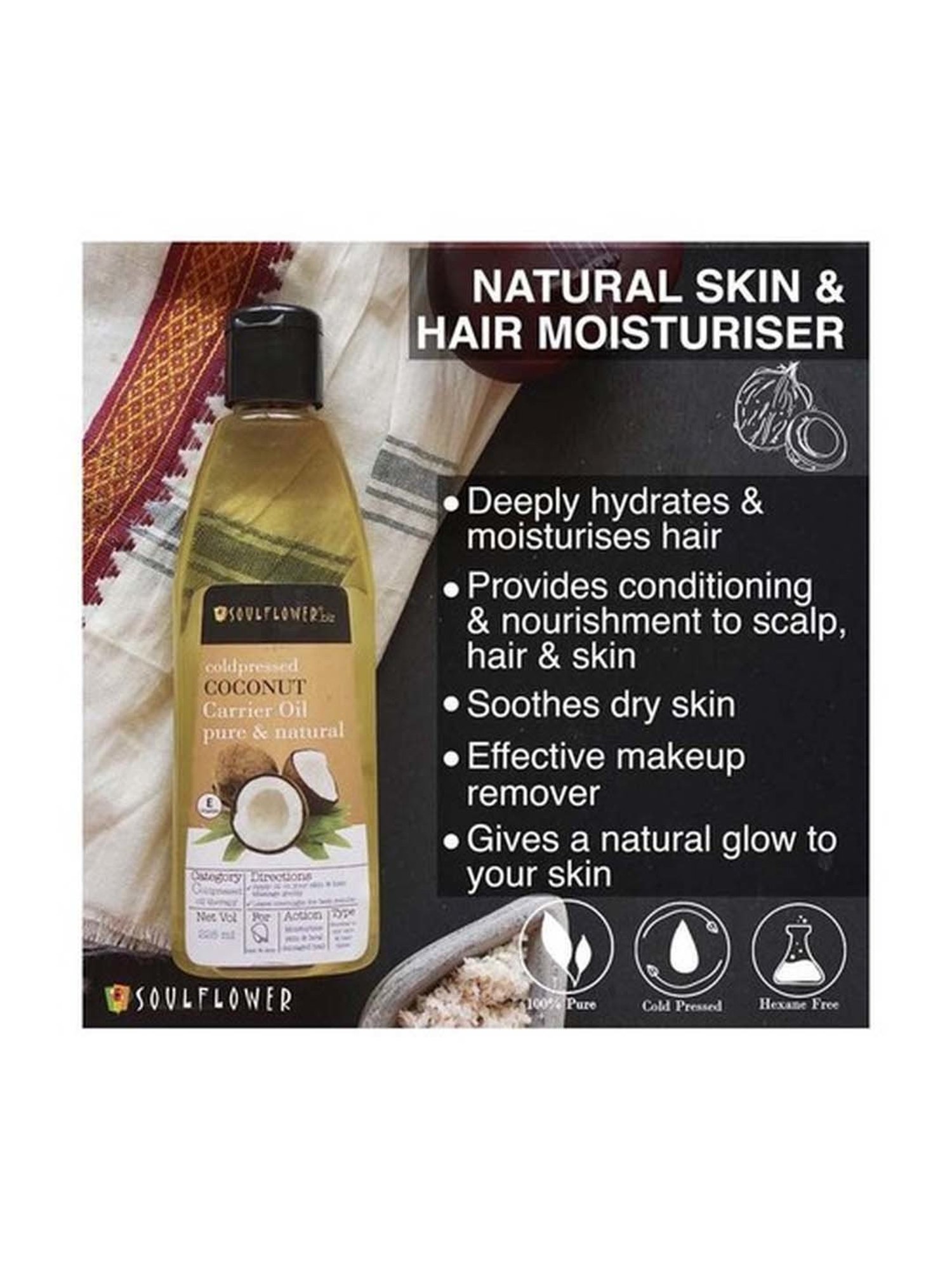 Coconut oil effectively moisturizes your skin. It can be used as a makeup remover for every skin type. It also soothes any itching or irritation and works great in repairing damage, controlling dry skin rashes of the skin or a great solution for dry skin problems. This pure and natural virgin coldpressed Soulflower coconut oil is the effective and easiest way to make your hair soft, manageable, shinier and damage-free. It can be used as a daily detangler and to protect hair from sun damage or hair styling tools. It also moisturizes delicate lip skin and enhances natural lip colour.