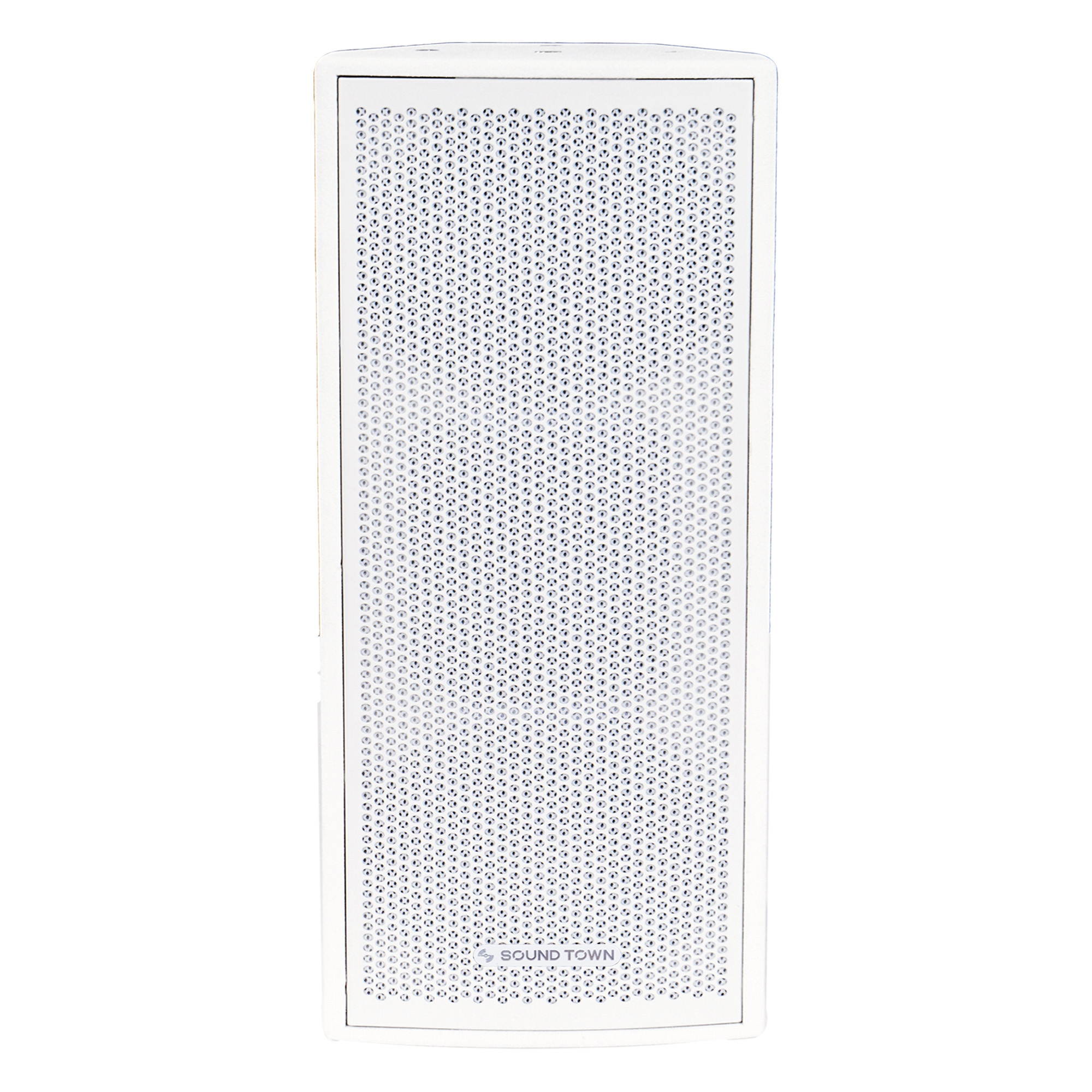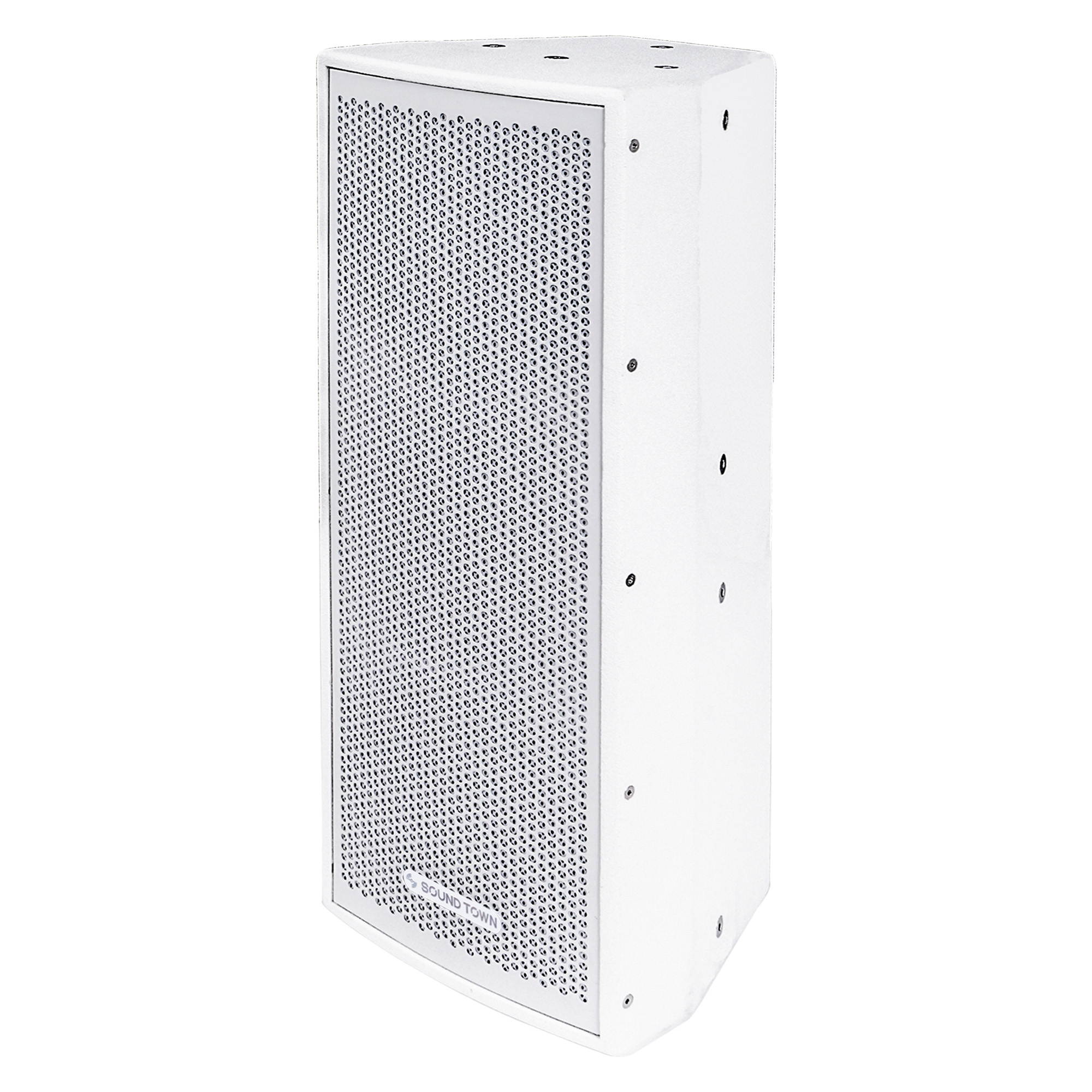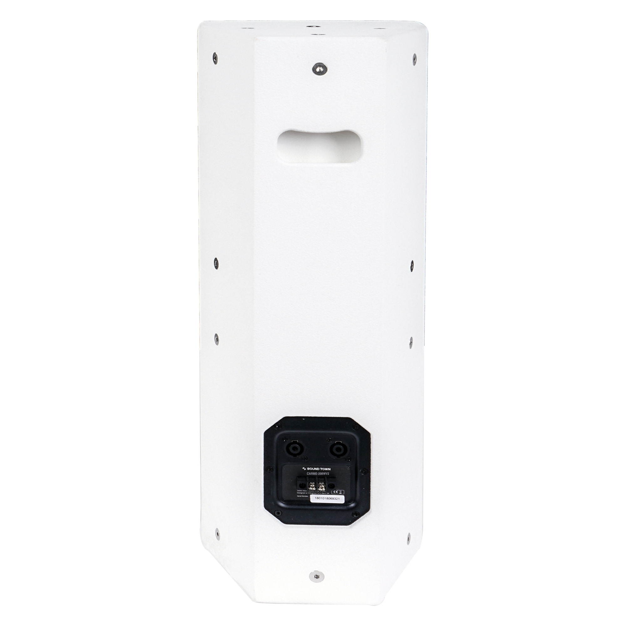 The rugged construction with 5/8” textured and painted plywood, the heavy-duty metal grille and protection corners hold up to tour applications. Ergonomically designed recessed handle for easy transportation. The white texture finish is more than just beautiful. With heavy-duty metal grille and sturdy construction, it holds up to touring applications. Its light weight, compact size form factor and two recessing ergonomic handles make it easy to transport