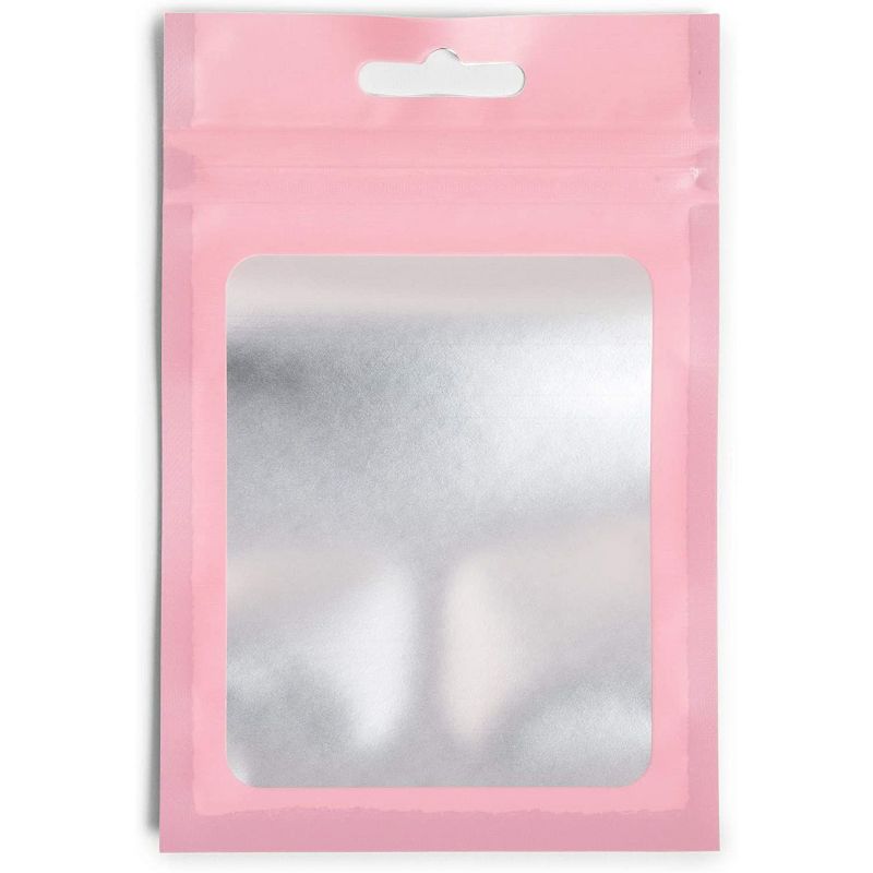 Resealable Bags: The pink bags feature a rectangular matte window, an opening slit on top to easily tear it open, and a self-sealing zipper; bags can stand by itself so they make classy kitchen or store displays