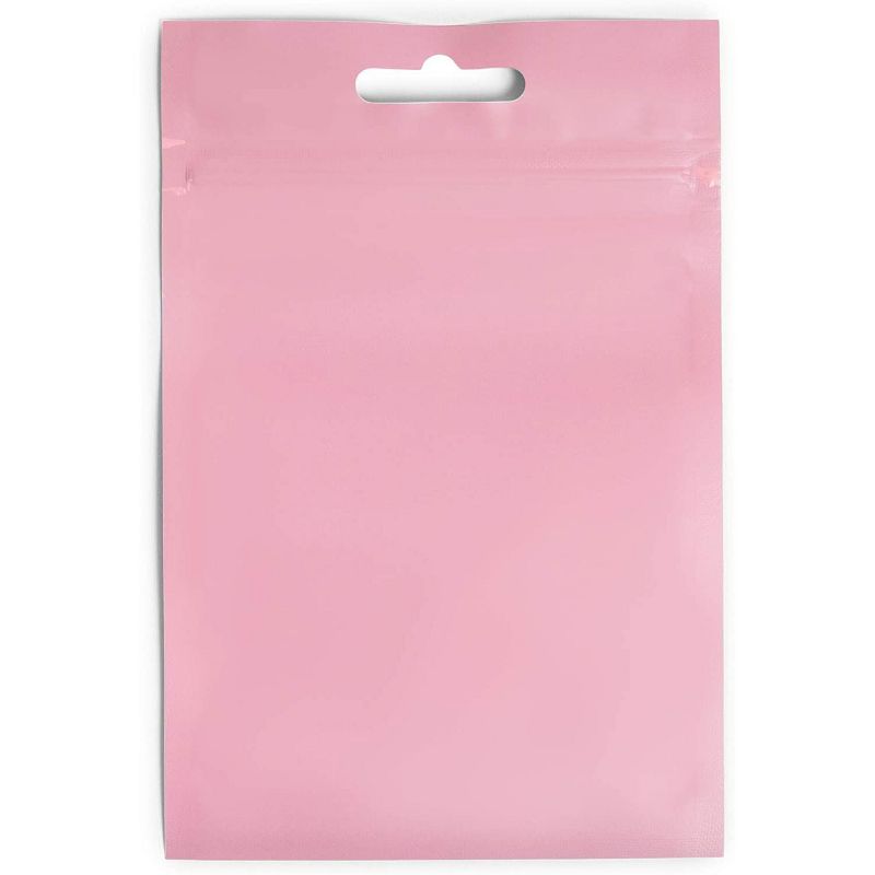 • Resealable Bags: The pink bags feature a rectangular matte window, an opening slit on top to easily tear it open, and a self-sealing zipper; bags can stand by itself so they make classy kitchen or store displays