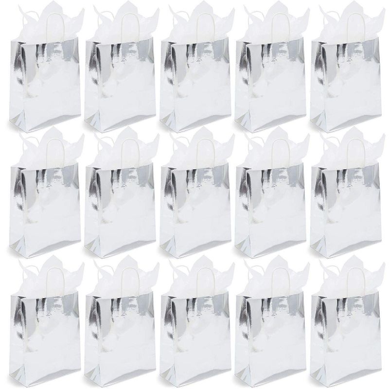 • WHAT’S INCLUDED: Includes 15 metallic silver foil gift bags