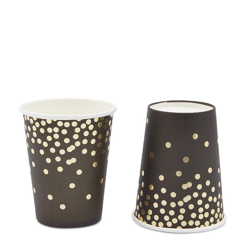• ELEVATE YOUR EVENING: Paper plates, cups and napkins feature an elegant design of gold foil polka dots on a black background; create a perfectly coordinated theme for birthdays, holiday events, dinner parties, cocktail hours, New Year's Eve, weddings, rehearsal dinners, bridal showers, anniversaries, graduations and family events
