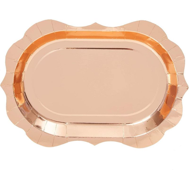 PAPER SERVING TRAYS: Make your party complete with plenty of snacks and treats with these vintage rose gold foil paper serving trays