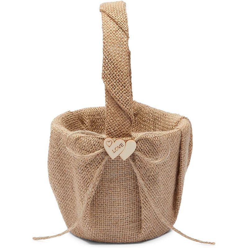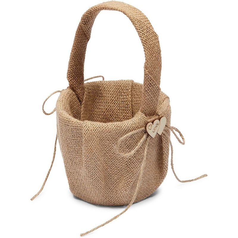 • Flower Girl Basket: This small jute basket is the perfect size for flower girls to carry down the aisle with more than enough room for your favorite florals and will effortlessly match rustic, shabby chic and modern farmhouse wedding aesthetics