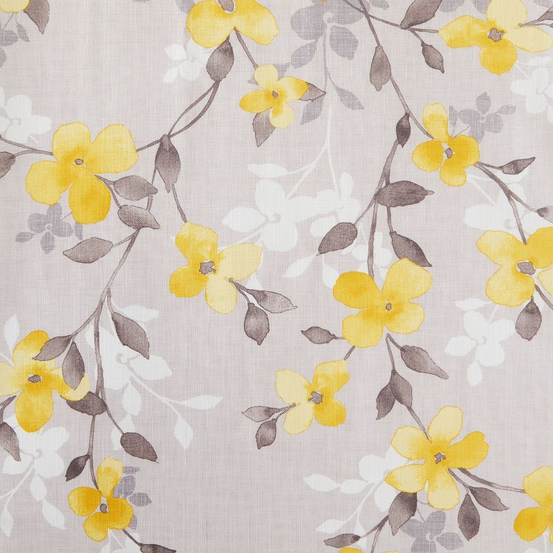 •Lightweight, woven design with a floral design in shades of grey, yellow and white