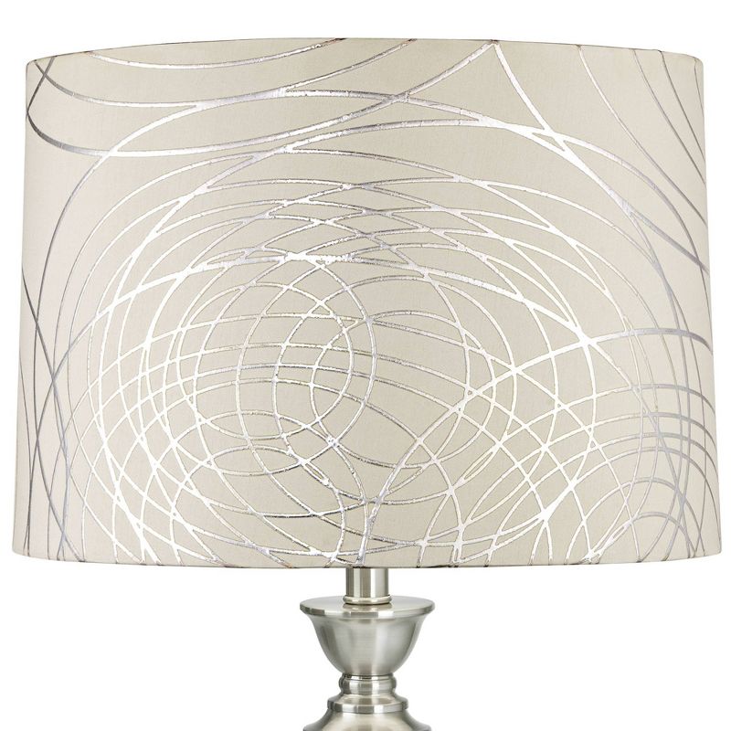 • Off-white pattern with silver graphic lines hardback shade, polyester fabric.