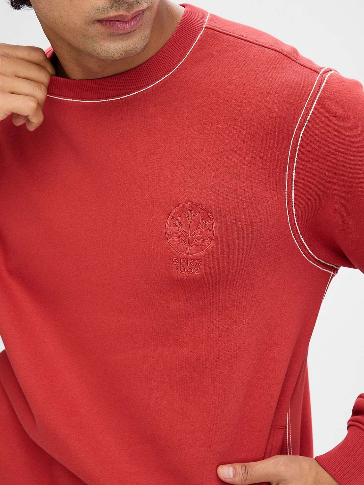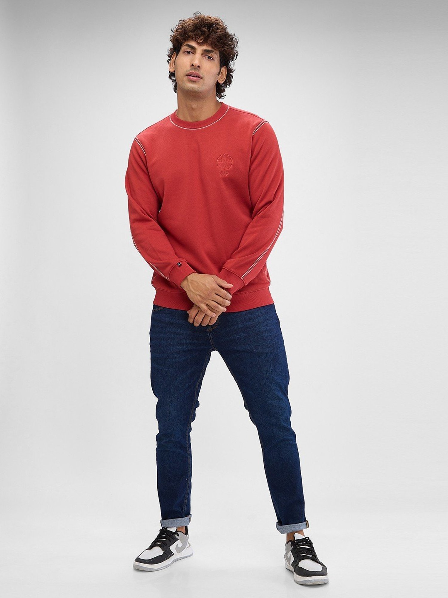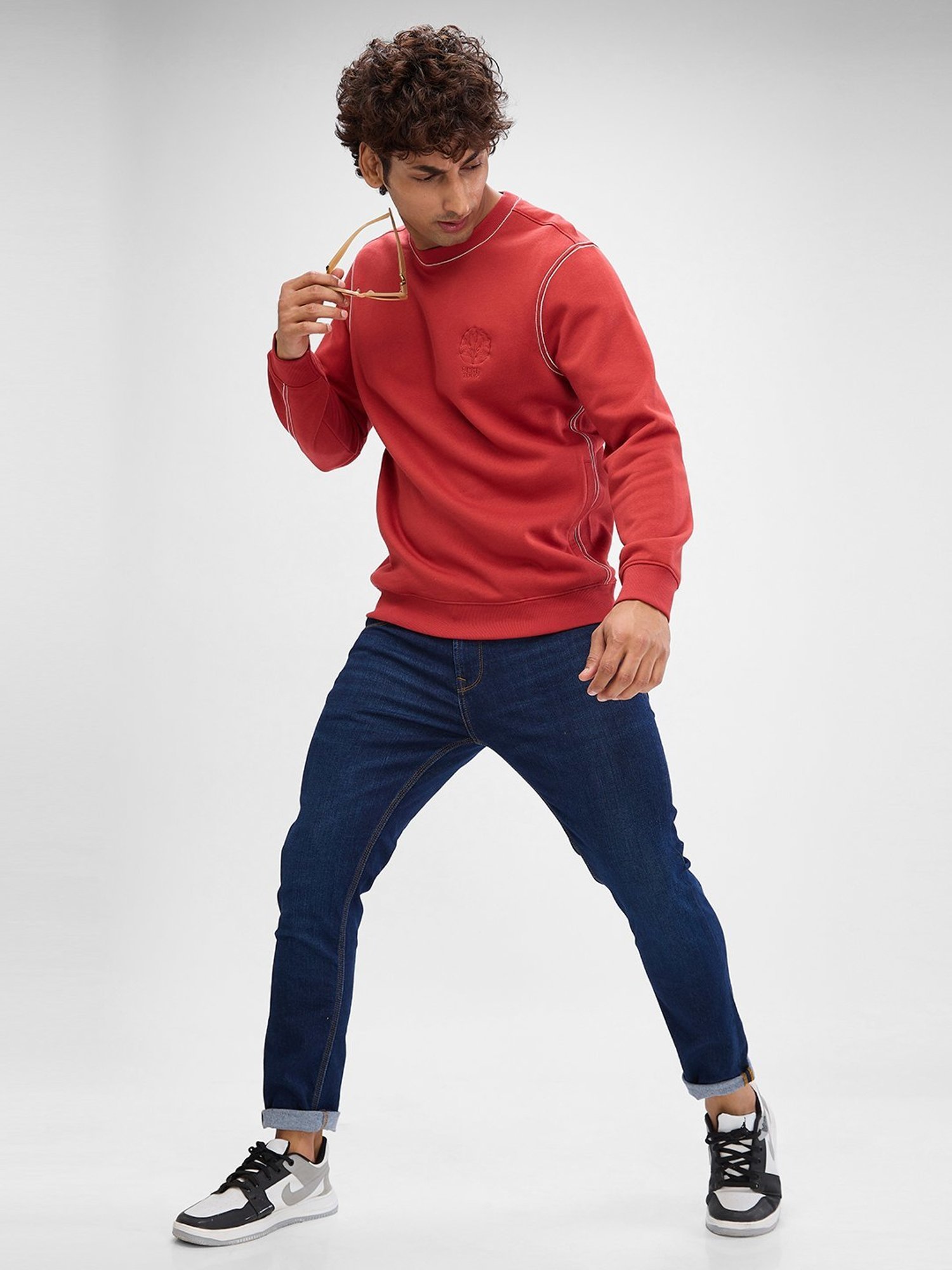 This red regular fit sweatshirts from Spykar is sure to make a style statement. Tailored to sartorial perfection from premium quality fabric, it assures a soft and soothing touch against the skin. The round neck adds to its appeal. Exuding full sleeves, it is sure to fetch you compliments from all.