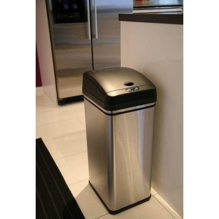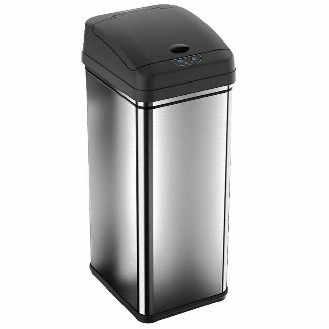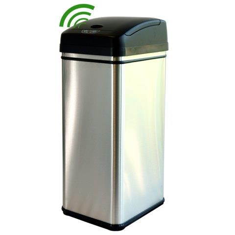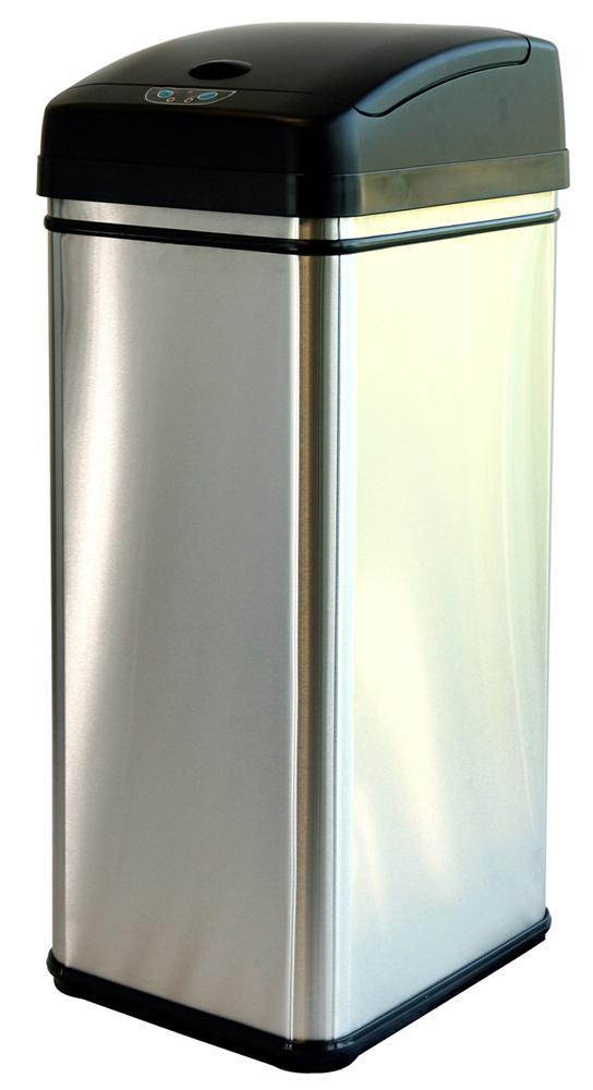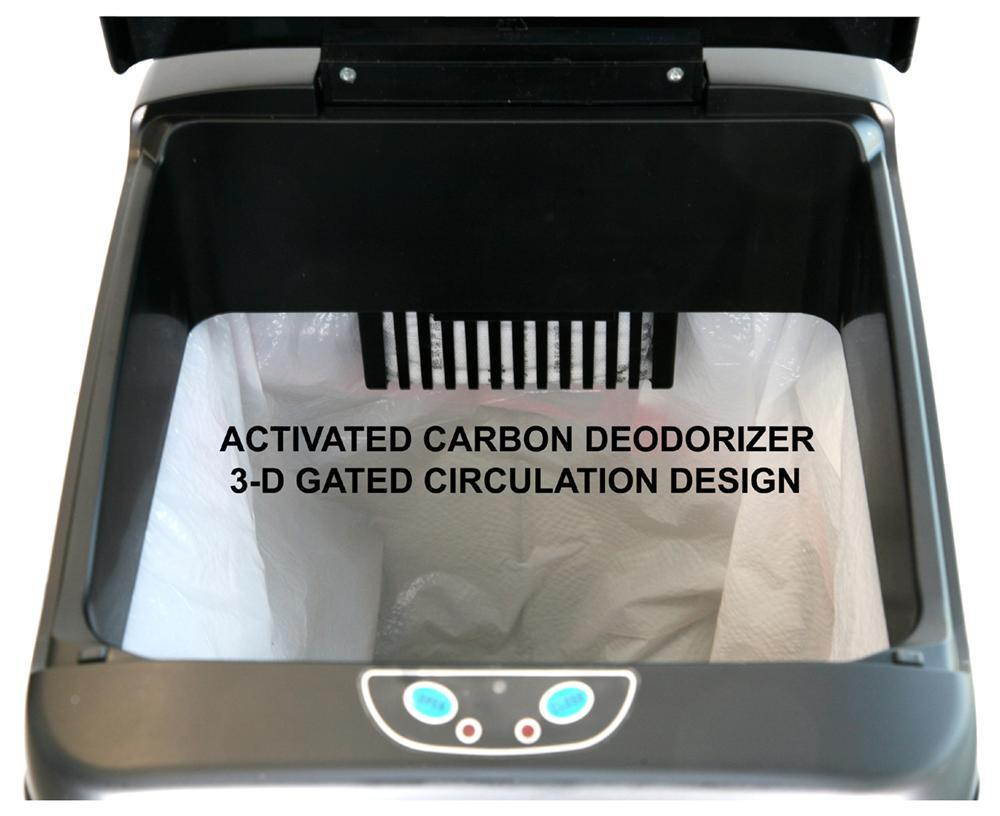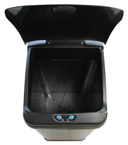 The Touchless Trashcan uses patented invisible and harmless infrared technology. Simply place your hand or debris about six inches away from the infrared sensor near the lid. It will open instantly when you approach and will close automatically in three seconds after debris has been released and your hand moves away. The lid will remain open if debris or your hand is within the 6-inch range of the infrared sensor. There are two buttons on the front to open and close the lid manually and a easy to reach on/off switch on the back of the trashcan.