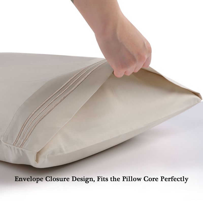 100% Long staple combed cotton material, envelop closure, Embroidered pattern. Natural Material - 600 Thread count long-staple combed cotton is soft, and strong which will provide a better sleep for you and your family. Pilling resistance fabric and expert weave produce a silky sateen finish, making your home more luxurious. Pillowcase has envelope closure to hide the pillow. EASY CARE - Machine wash in cold/medium temperature water, tumble dry on low, they are cotton material, so they might wrinkle a little, we recommend taking them out of the dyer before finishing drying, and do not use bleach to limit fading. Pillow Cover/Cases only, Price is for 2-Piece.
