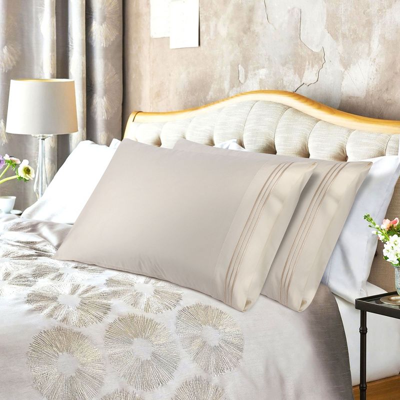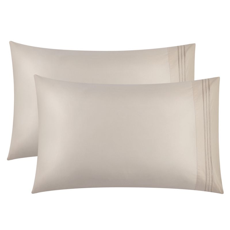 Product Name: Standard(20"x26") 100% Cotton Wrinkle Resistant Embroidered Design Pillow Cases Beige - PiccoCasa