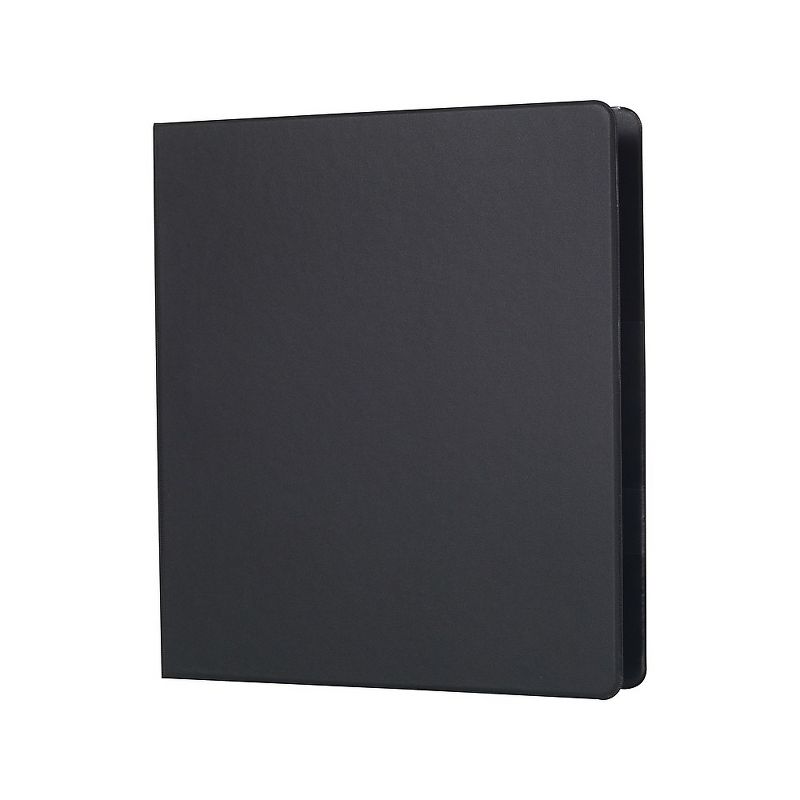 • Black non-view binders to protect work documents and keep them organized. Three D-Rings keep pages secure. 220-sheet capacity for organizing large projects. Durable covers are made of plastic with nonstick surface. Four pockets for organization.